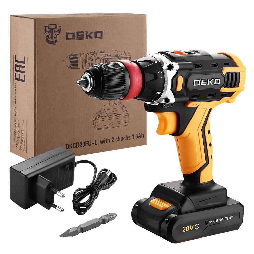 Аккумуляторная дрель-шуруповерт DEKO DKCD20FU-Li со съемным патроном, 1x1.5Ач