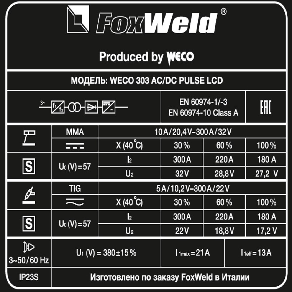 Аппарат аргонодуговой сварки WECO TIG 303 AC/DC PULSE LCD