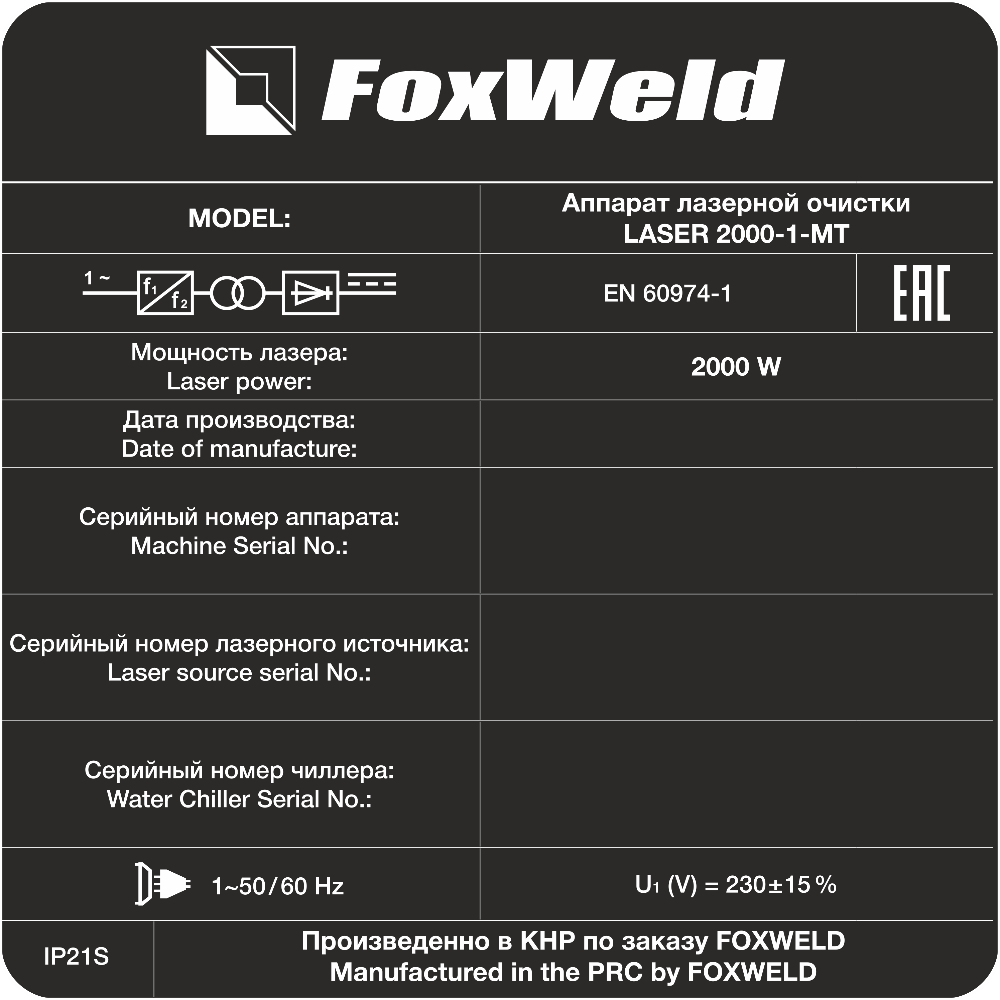 Аппарат для ручной лазерной очистки FOXWELD LASER 2000-1-МТ