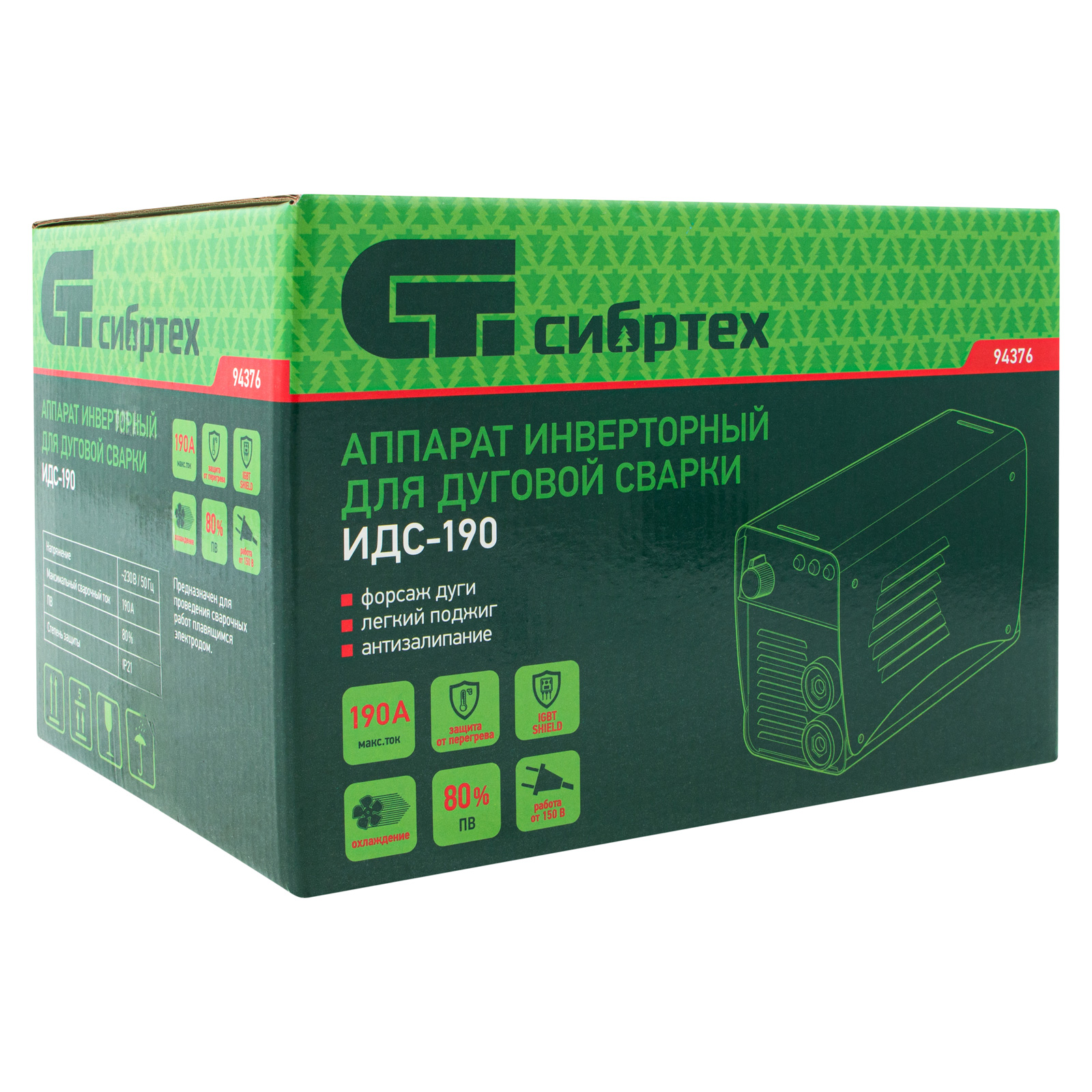 Аппарат инверторный дуговой сварки ИДС-190, 190 А, ПВ 80%, диаметр электрода 1.6-4 мм Сибртех