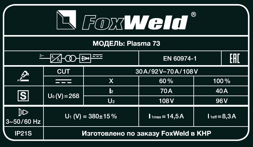 Аппарат плазменной резки Plasma 73 (пр-во FoxWeld/КНР)