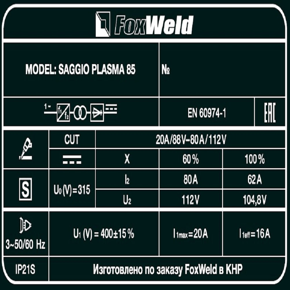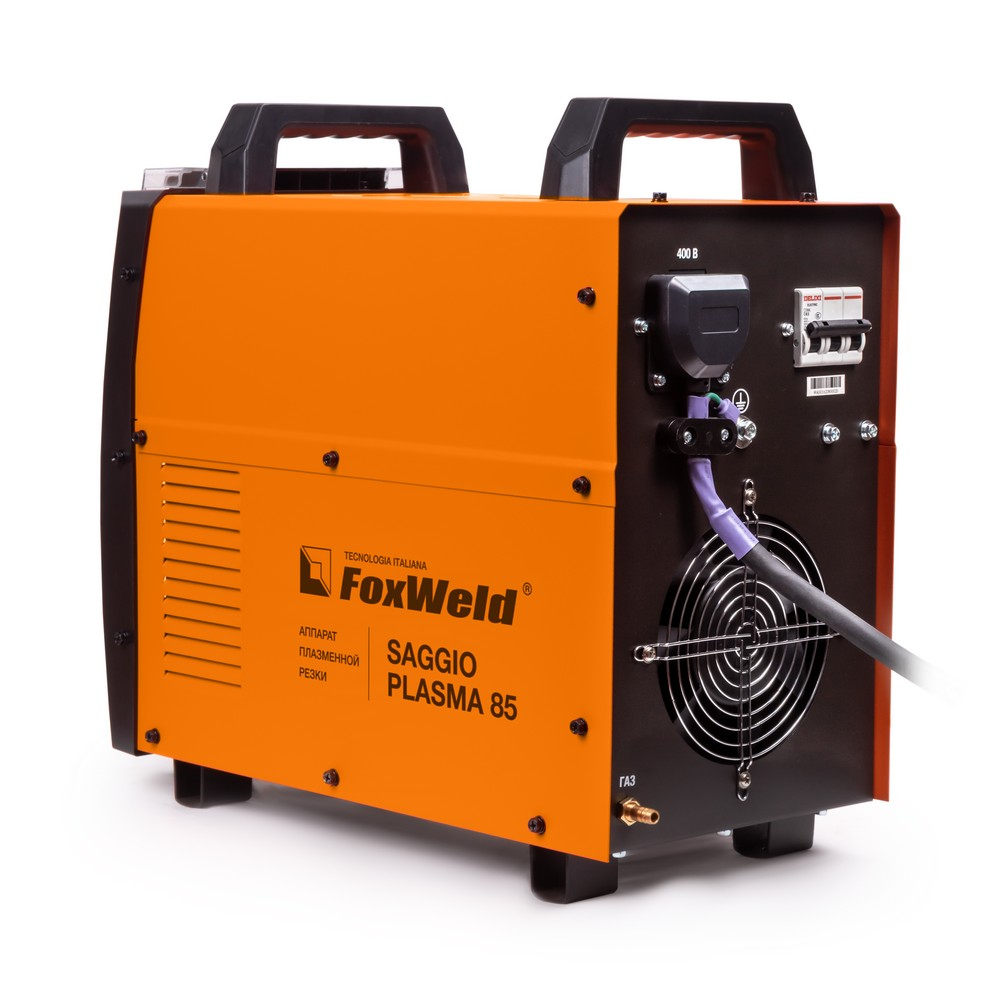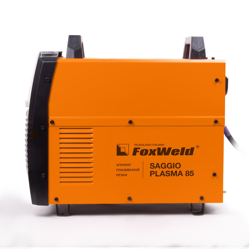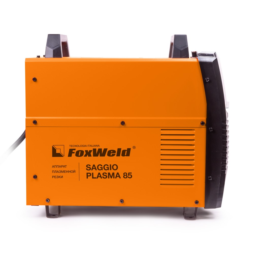 Аппарат плазменной резки FOXWELD SAGGIO PLASMA 85 позволяет разрезать сталь толщиной до 30 мм. SAGGIO PLASMA 85 подходит для резки алюминиевых сплавов, меди, цветных металлов, нержавеющей и углеродистой стали. Дежурная дуга плазмотрона обеспечивает стабильность и удобство, особенно при резке загрязнённых и окрашенных поверхностей. Режимы работы плазмотрона 2Т / 4Т подходят для короткого и длинного реза. Цифровой дисплей на панели управления отображает значение тока резки. Продувка сжатым воздухом после окончания работ с помощью ручки-регулятора увеличивает срок службы комплектующих частей плазмотрона.ДЕЖУРНАЯ ДУГА: Дежурная дуга плазмотрона (PILOT ARC) – это первичная дуга между электродом и соплом, которая направляется за счёт сжатого воздуха к поверхности. В момент контакта с разрезаемым материалом дежурная дуга гаснет и загорается режущая дуга, что обеспечивает «доступ» режущей дуги к основному материалу. Благодаря этому плазменная струя не гаснет даже на металлической сетке. Аппарат с дежурной дугой отлично подойдёт для резки сеток, загрязнённых, окрашенных и перфорированных поверхностей.ТОЛЩИНА РЕЗА ДО 30 ММ: Благодаря высоким динамическим характеристикам дуги, стабильному току резки и наличию дежурной дуги аппарат способен разрезать металл толщиной до 30 мм.РЕЖИМ 2Т / 4Т: Двухтактный режим подходит для короткого реза: при удерживании кнопки на плазмотроне начинается процесс резки, при отпускании – заканчивается. Четырёхтактный режим предназначен для длинного реза: при кратковременном нажатии и отпускании кнопки начинается процесс резки, при повторном кратковременном нажатии и отпускании – заканчивается.ЦИФРОВОЙ ДИСПЛЕЙ: Продувка сжатым воздухом после окончания работ увеличивает срок службы комплектующих частей плазмотрона.ЗАЩИТА ПЕРЕДНЕЙ ПАНЕЛИ: Прозрачная пластиковая крышка защищает панель управления аппарата от искр, шлака и других воздействий рабочего процесса.ПРЕИМУЩЕСТВА:Дежурная дуга плазмотронаВоздушное охлаждениеЗащита от перегреваПродувка после резки для охлаждения плазмотронаРежимы работы плазмотрона 2Т / 4ТФУНКЦИОНАЛЬНЫЕ ОСОБЕННОСТИ:ТАБЛИЦА ПОДБОРА КОМПРЕССОРОВ: В таблице ниже - рекомендации по подбору нужного компрессора.КОМПЛЕКТАЦИЯ: Аппарат плазменной резки SAGGIO PLASMA 85 – 1 шт.; Плазмотрон A101, 5 м. – 1 шт.; Кабель заземления с зажимом, 3 м. – 1 шт.; Узел подготовки воздуха со скобой для крепления – 1 шт.; Штуцер для подсоединения узла подготовки воздуха – 2 шт.; Газовый шланг 2,4 м. – 1 шт.; Катод – 2 шт.; Сопло – 2 шт.; Роликовая насадка – 1 шт.; Хомут – 4 шт.; Инструкция – 1 шт.; Гарантийный талон - 1 шт.