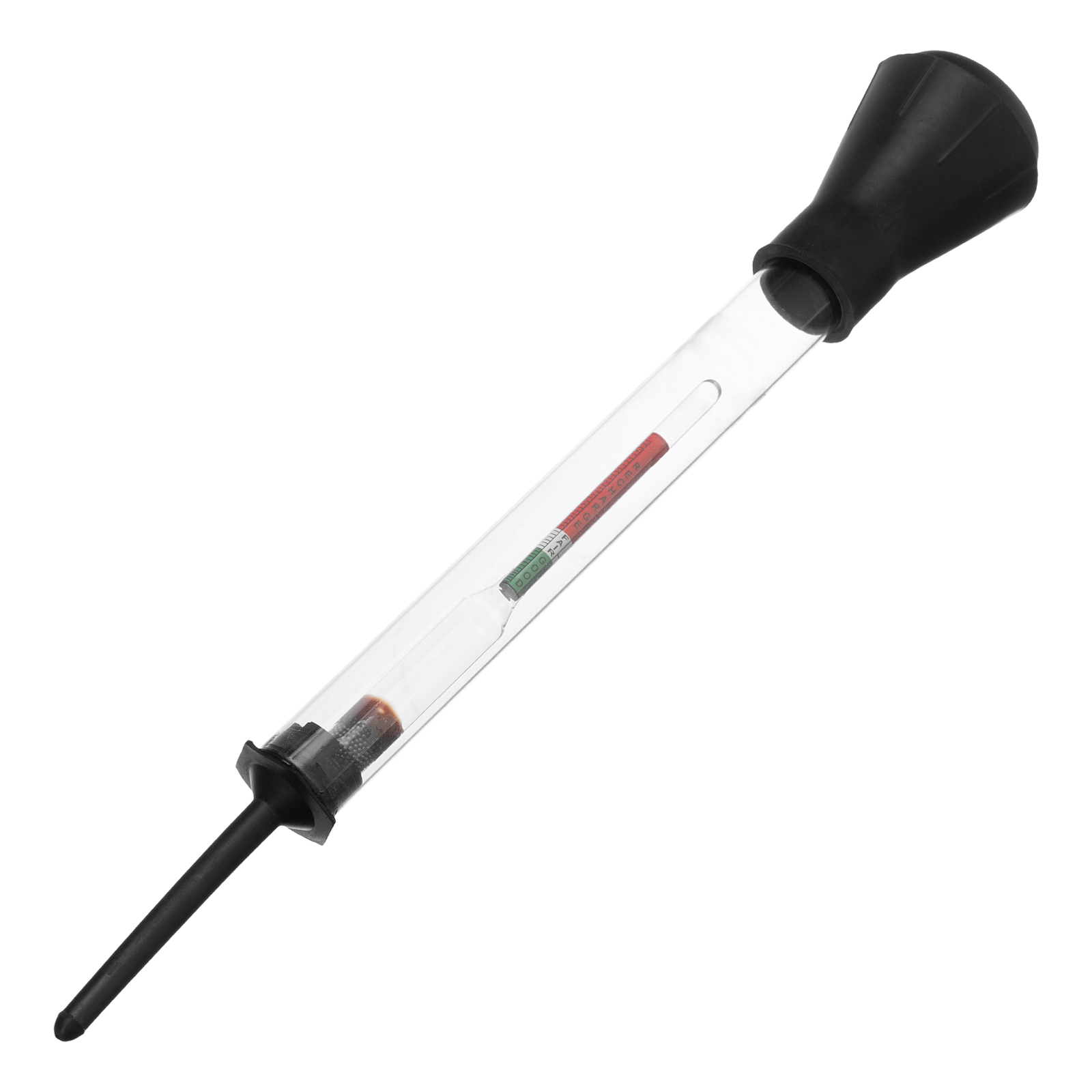 - Простота и точность замеров — цветная шкала с допустимыми значениями плотности помогает легко определить, нужно ли менять жидкость в аккумуляторе.