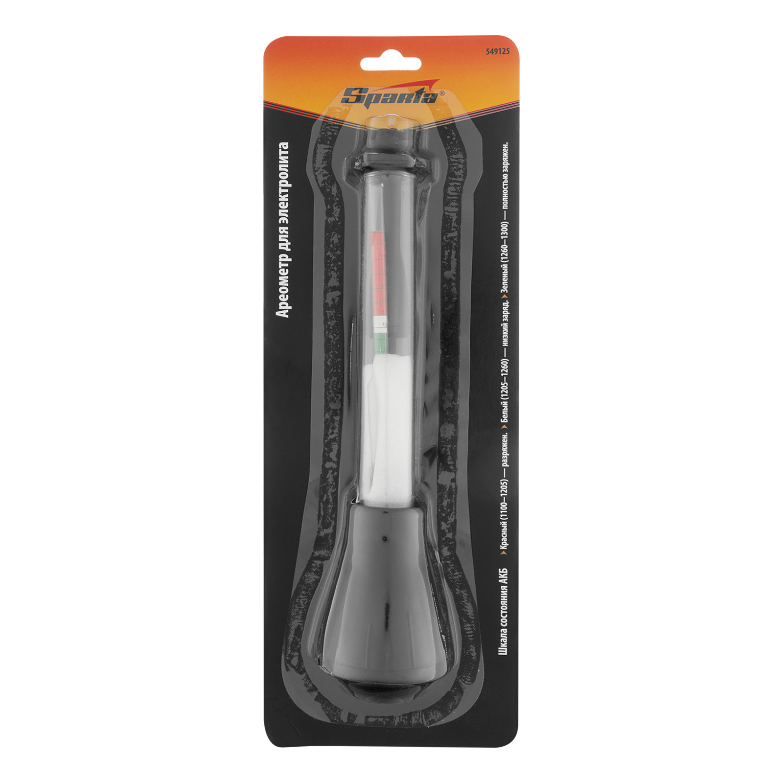 Ареометр для измерения плотности электролита Sparta 549125 — необходимый для водителей и механиков прибор, который значительно упрощает процесс проверки плотности электролита в аккумуляторе автомобиля. С помощью него можно определить необходимость замены раствора, а также измерить его качество.