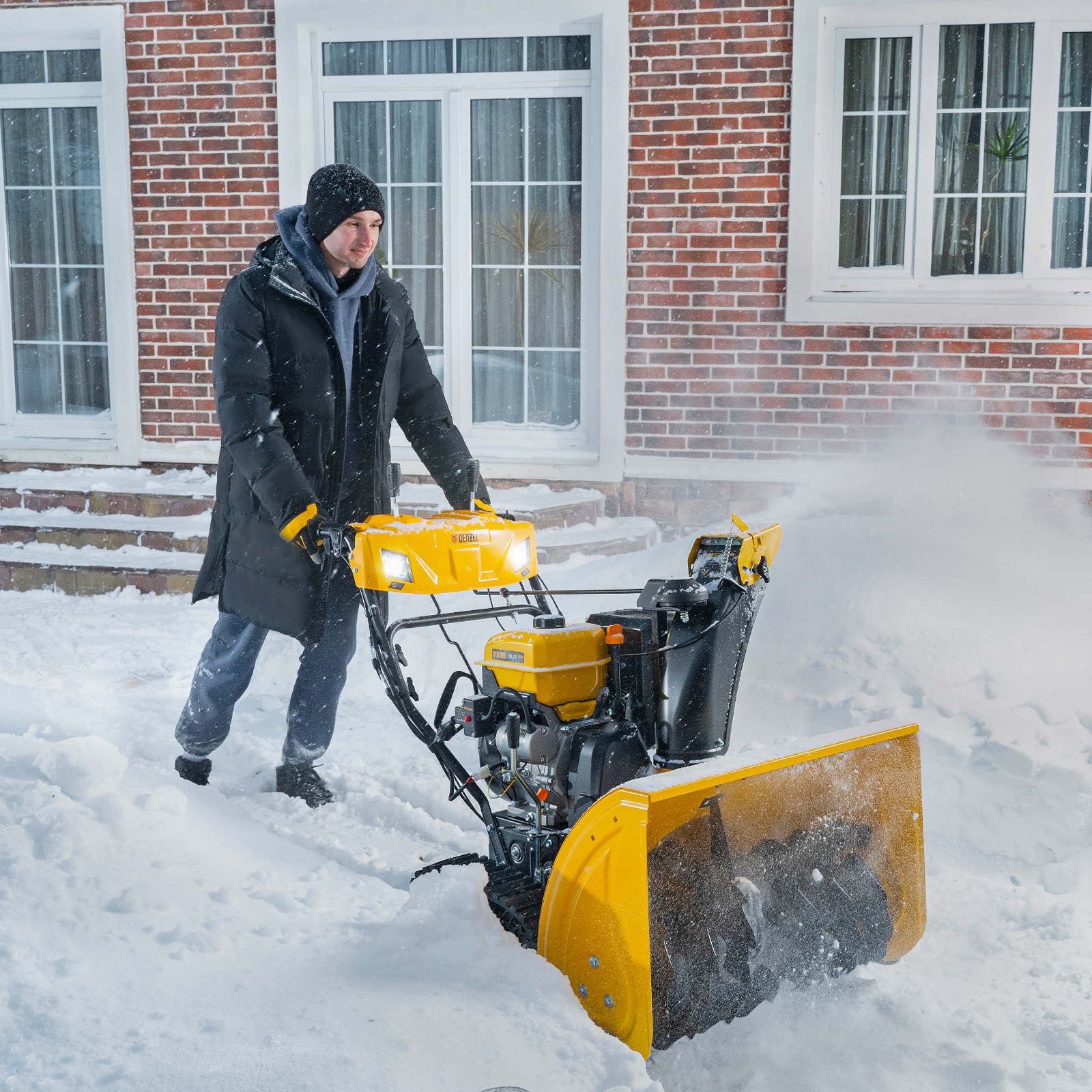 - Комфортная работа в темное время суток — снегоуборочная машина оснащена яркой двойной LED-фарой.