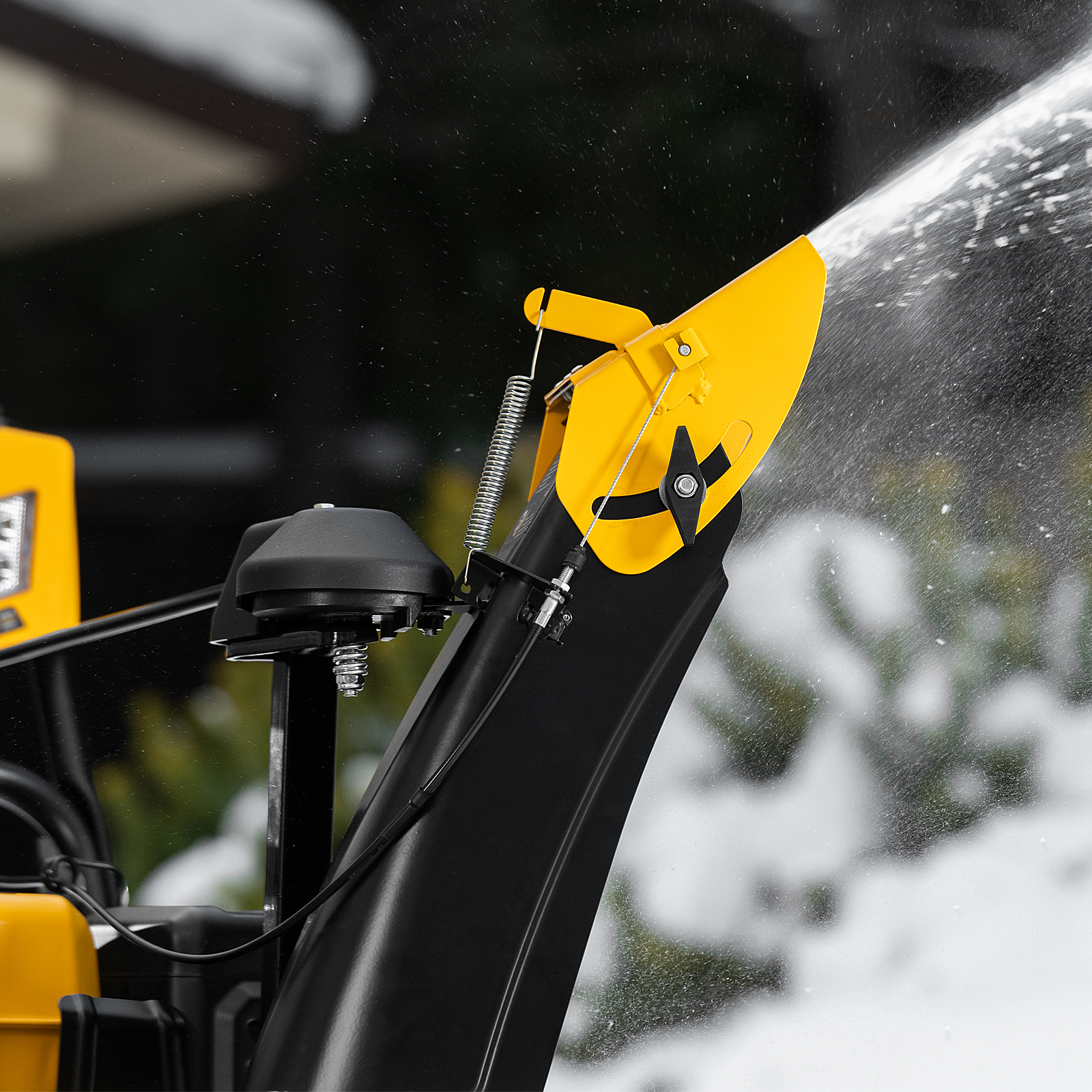- Выбор направления и дальности выброса снега — угол поворота и наклона желоба легко меняется на панели управления под потребности пользователя.