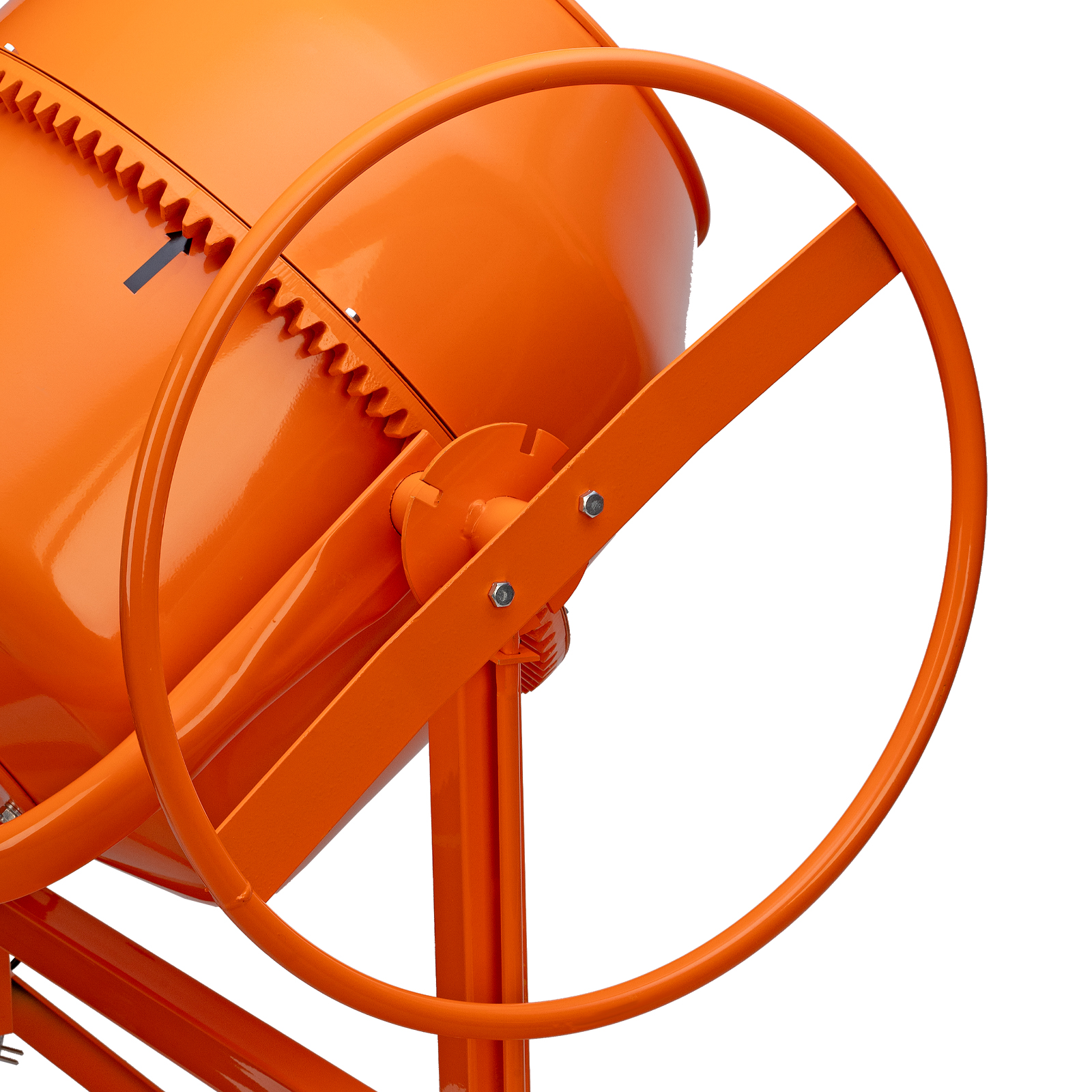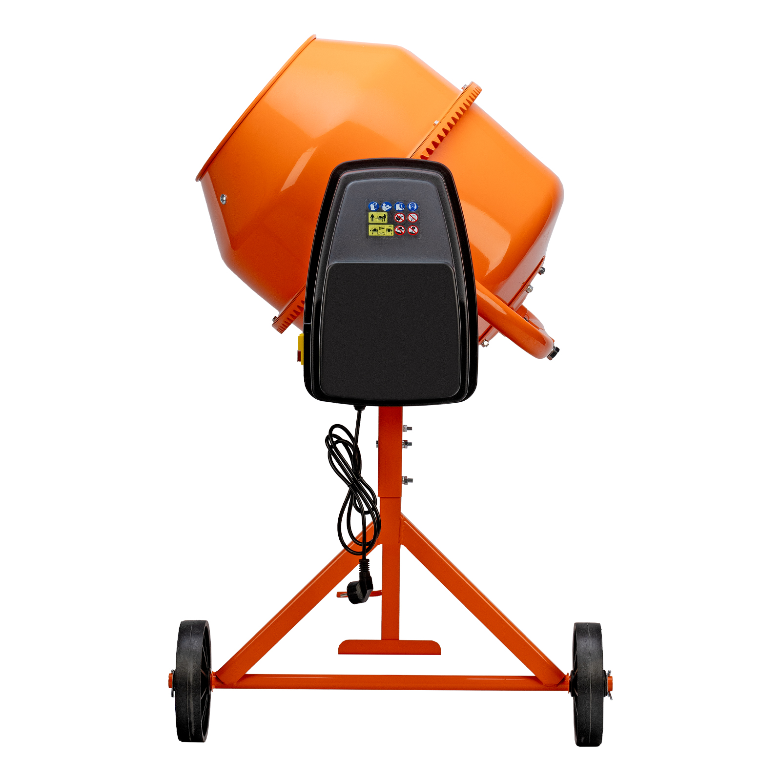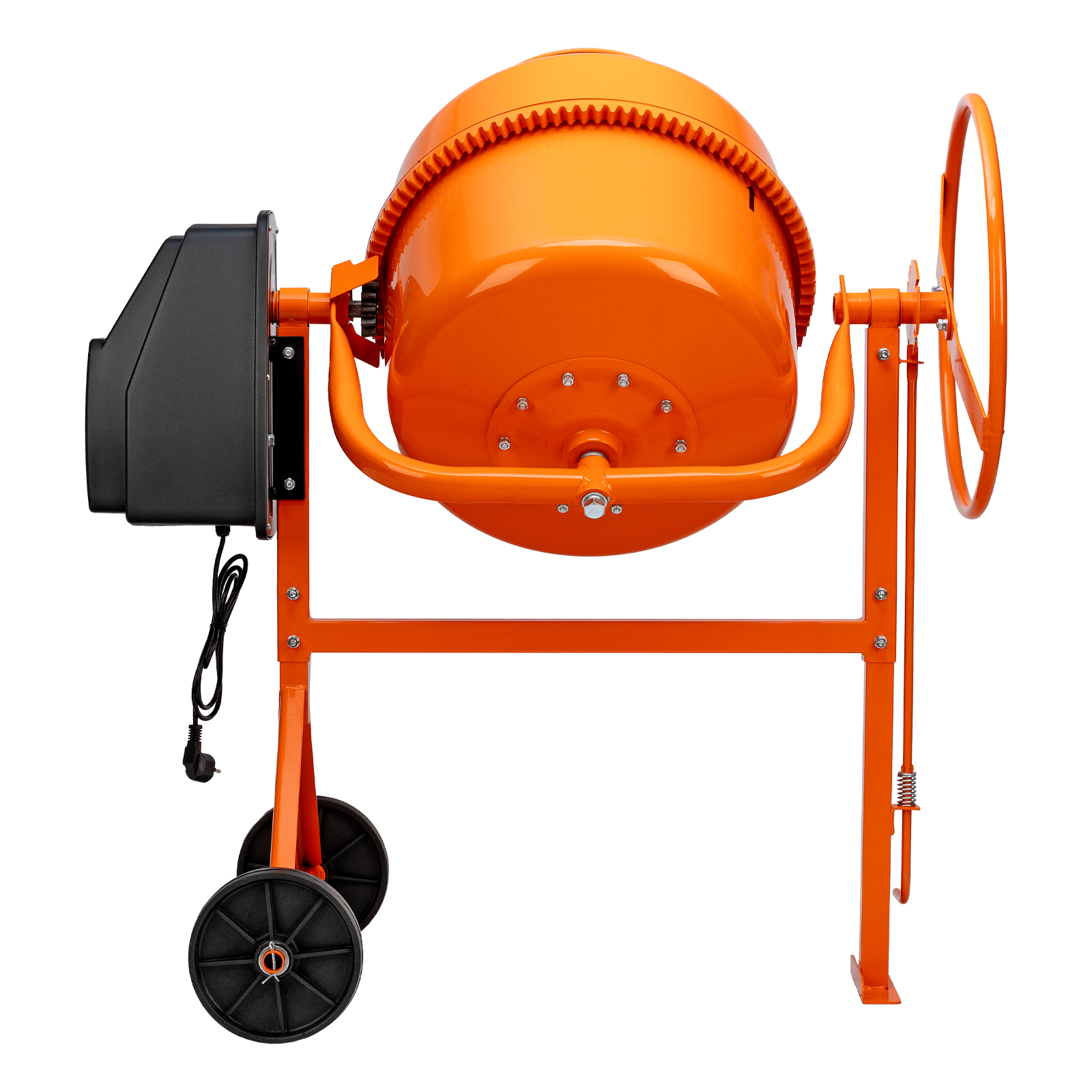 - Мобильность — маневренные колеса из прочного пластика облегчают перемещение бетоносмесителя по неровной земле, что особенно удобно на строительной площадке.