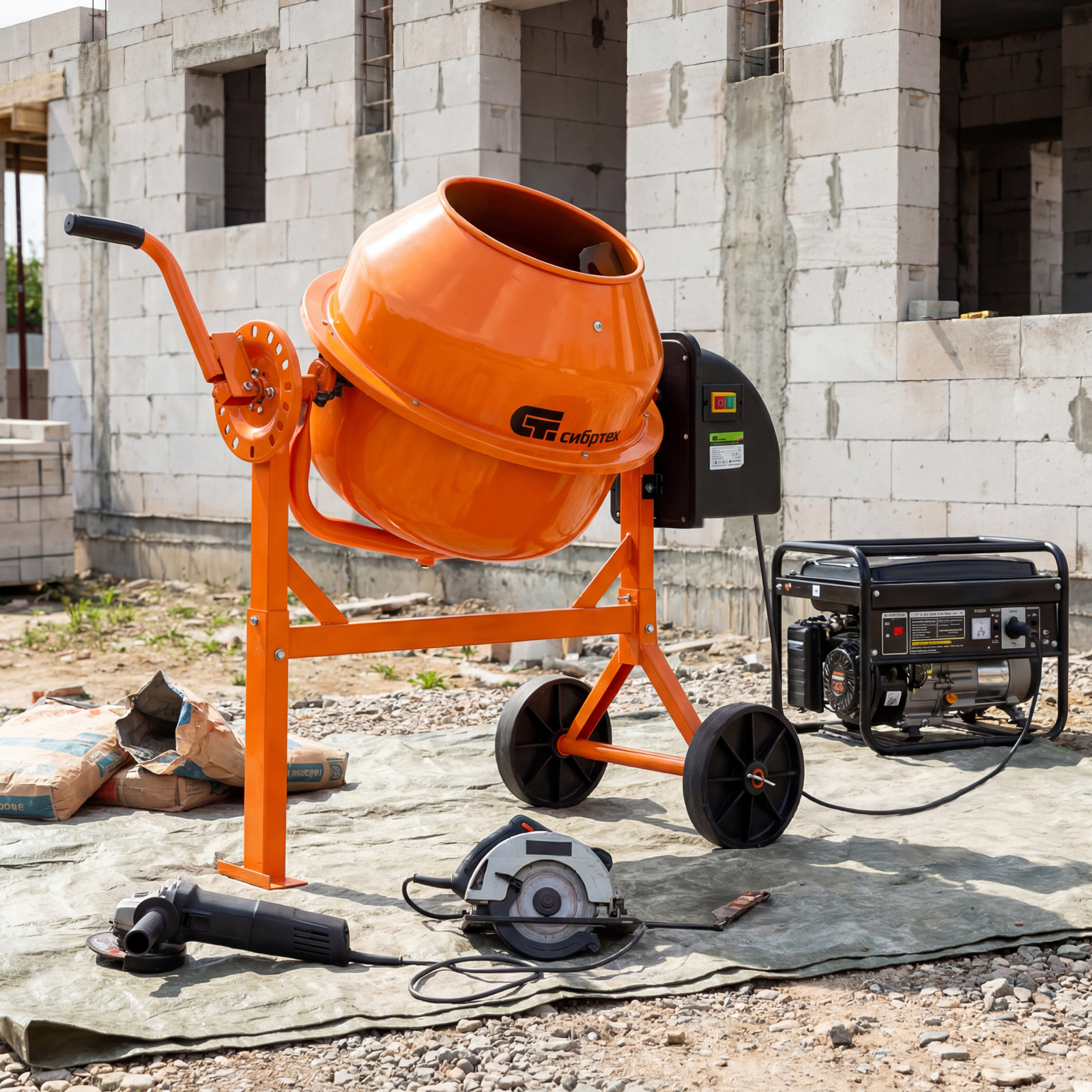 Бетоносмеситель Сибртех БСЛ-63 95469 объемом 63 литра и мощностью 300 Вт применяется при производстве штукатурки для отделки стен, подвижных бетонных растворов для работ с фундаментом и стяжки пола, клеевых смесей для укладки плитки. Малый размер барабана позволяет использовать устройство в небольших помещениях, без труда перемещая его в нужное место. При максимально допустимом заполнении на выходе получится до 40 л готовой смеси. Венец из прочной перфорированной стали выдерживает несколько рабочих циклов с небольшими перерывами, что позволяет ускорить процесс работы.