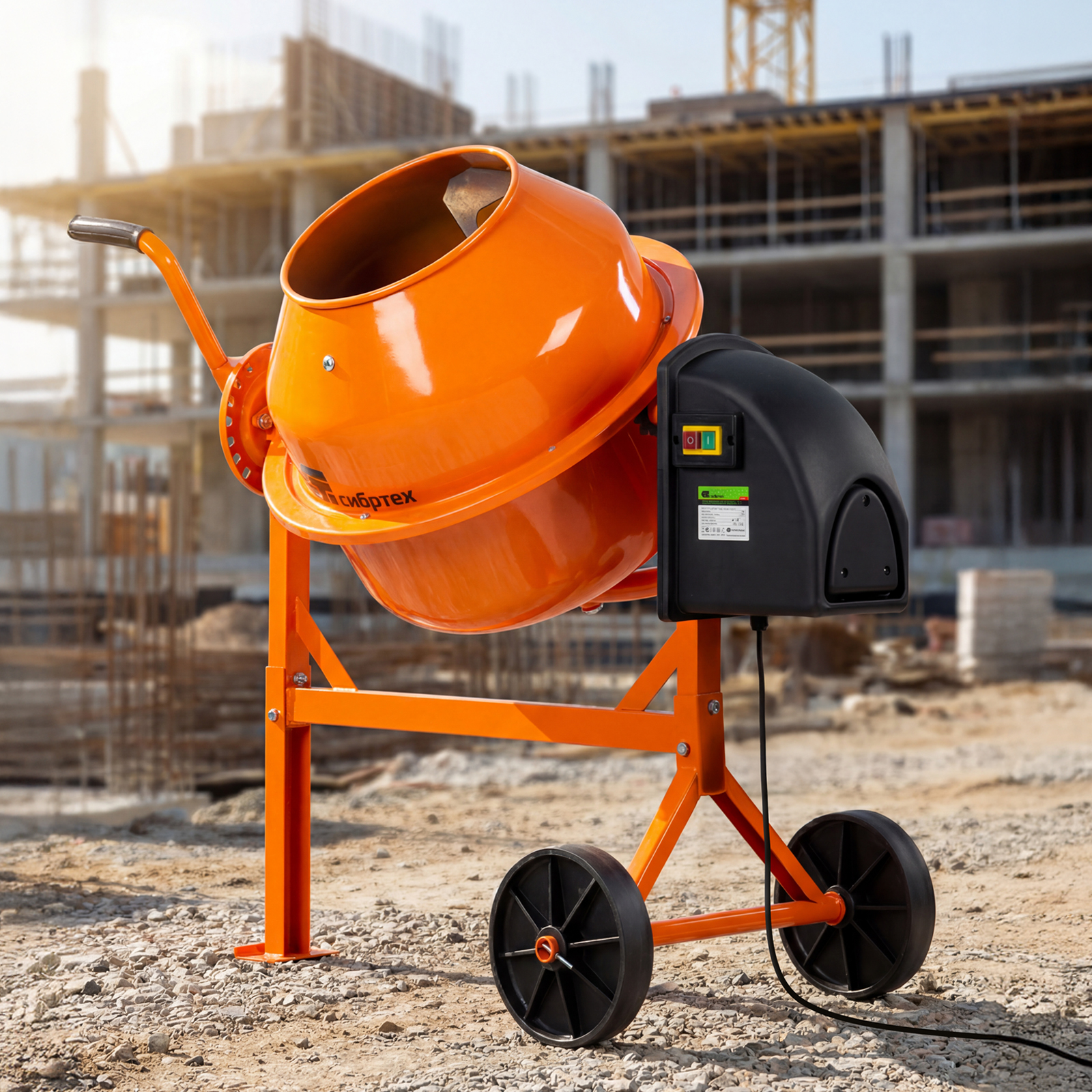 - Удобное перемещение по рабочей площадке — бетоносмеситель оснащен колесами диаметром 20,5 мм.