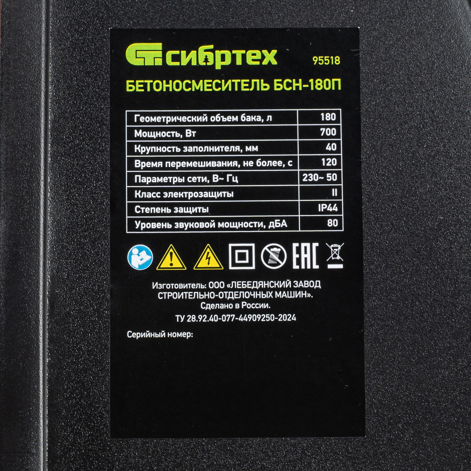 Бетоносмеситель БСН-180П, мощность 700 Вт, полиамидный венец Сибртех в Казани