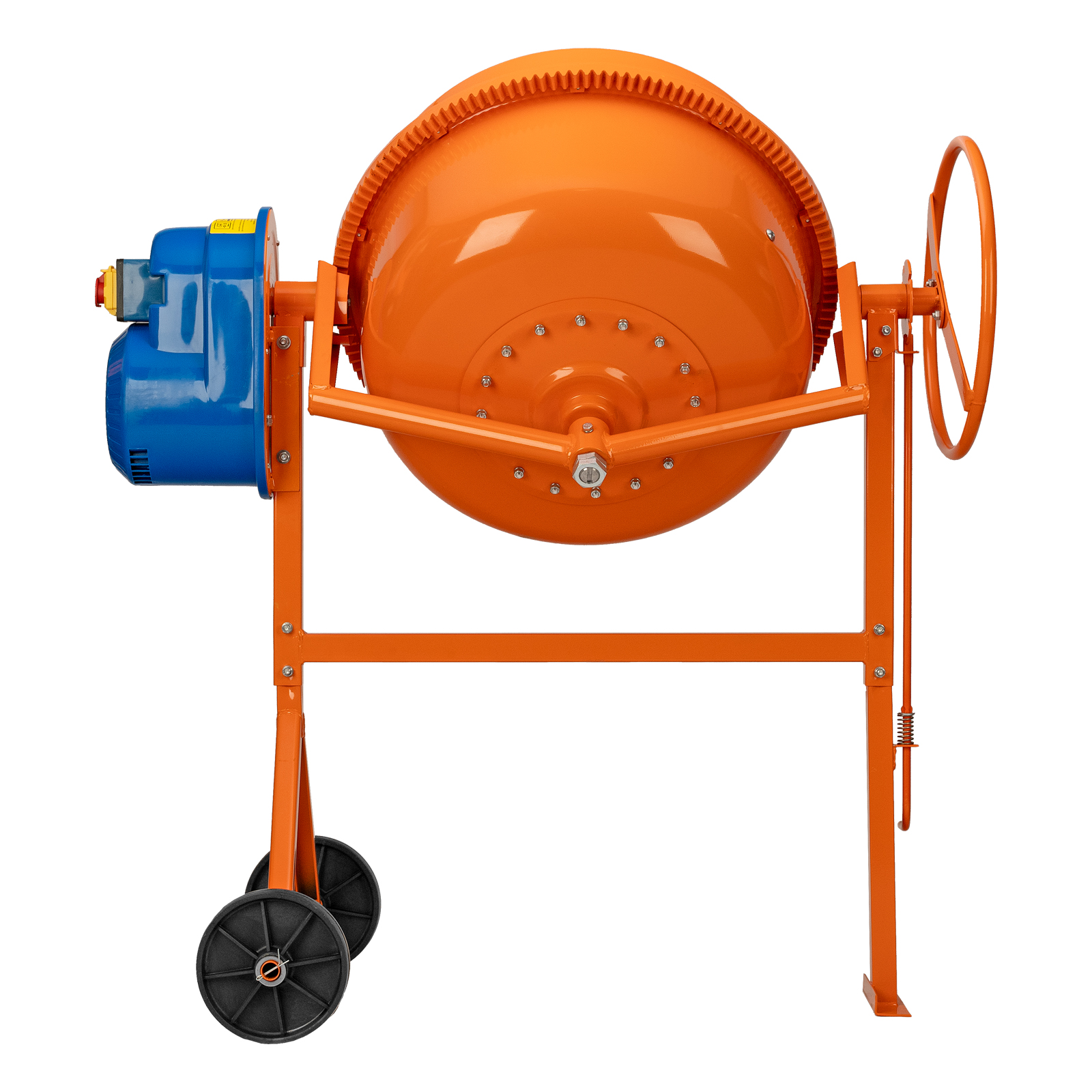 - Надежная конструкция — чугунный венец отличается прочностью, усиленная рама обеспечивает устойчивое положение полностью загруженного бетоносмесителя.