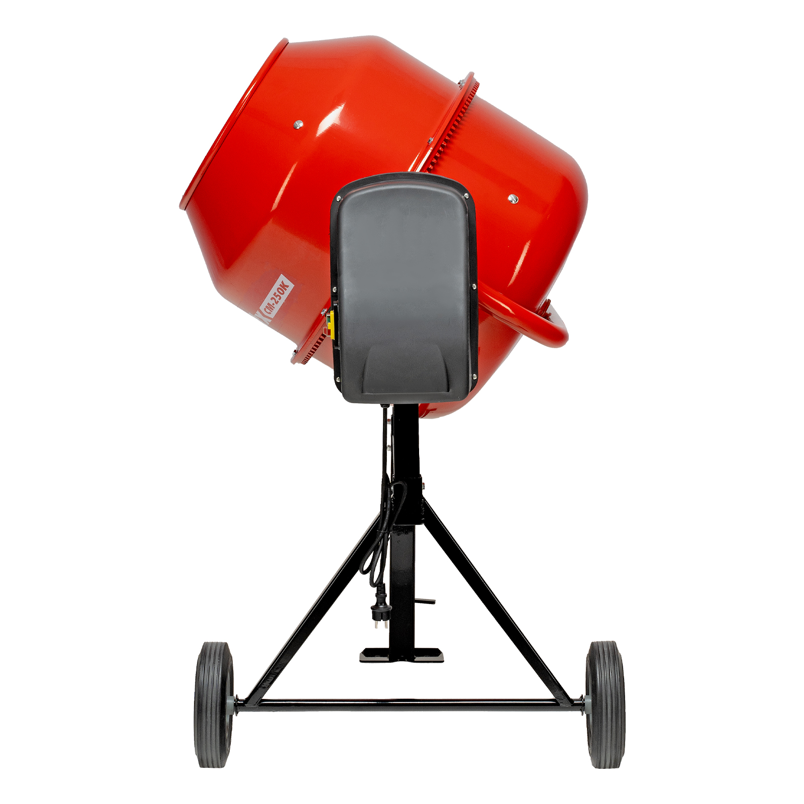 - Мобильность — колеса увеличенного диаметра облегчают перемещение бетоносмесителя по рабочей площадке.