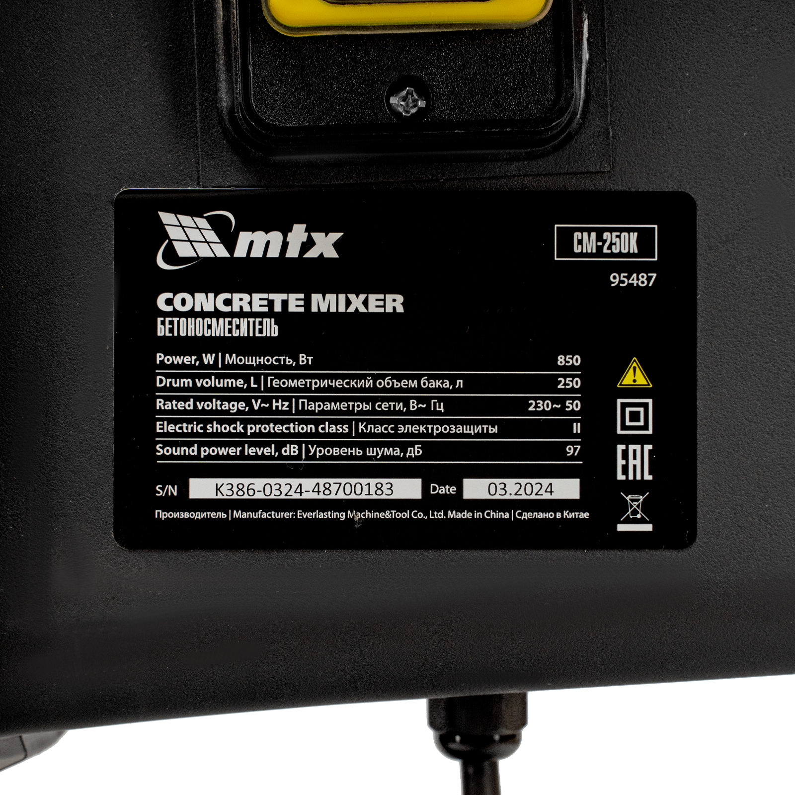 - Электробезопасность — токопроводящие элементы надежно изолированы, бетоносмесителю присвоен II класс защиты.