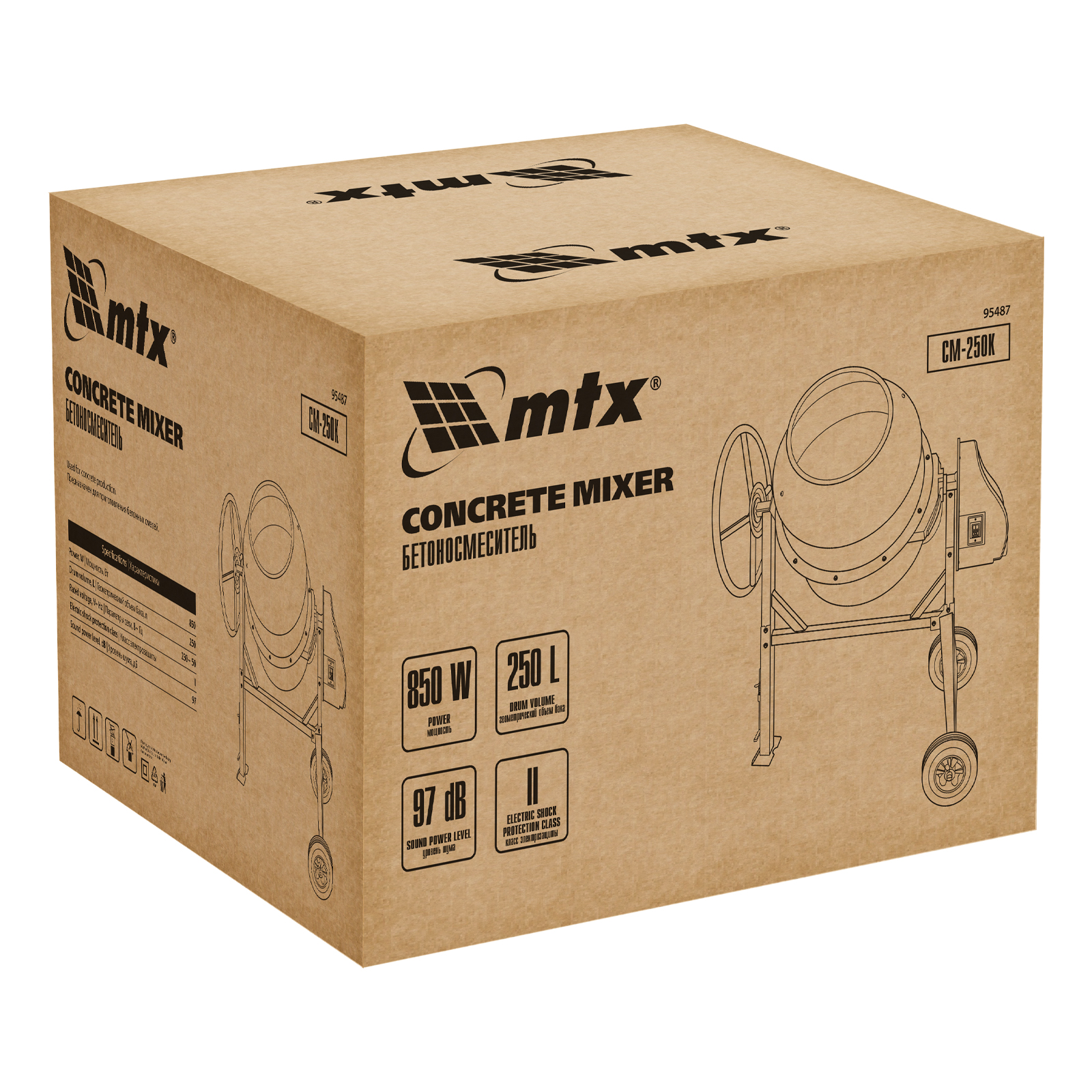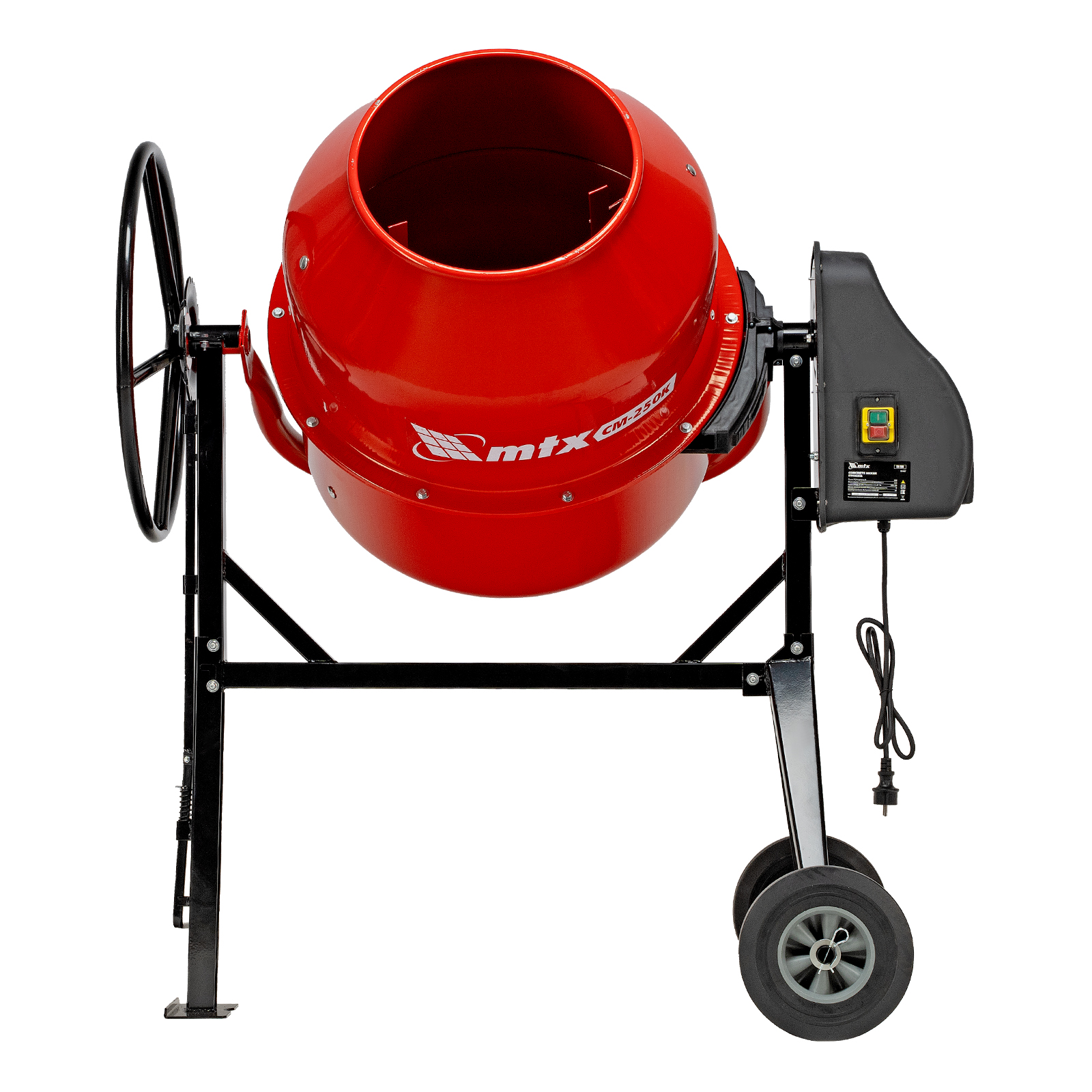 Бетоносмеситель MTX CM-250K 95487 мощностью 850 Вт, с баком на 250 л, предназначен для приготовления бетонных смесей и штукатурных растворов. Оптимальное соотношение мощности двигателя и объема бака обеспечивает высокую скорость перемешивания и надлежащее качество полученной смеси. Максимальный объем готового раствора составляет 165 л. Бетоносмеситель будет полезен на строительной площадке.