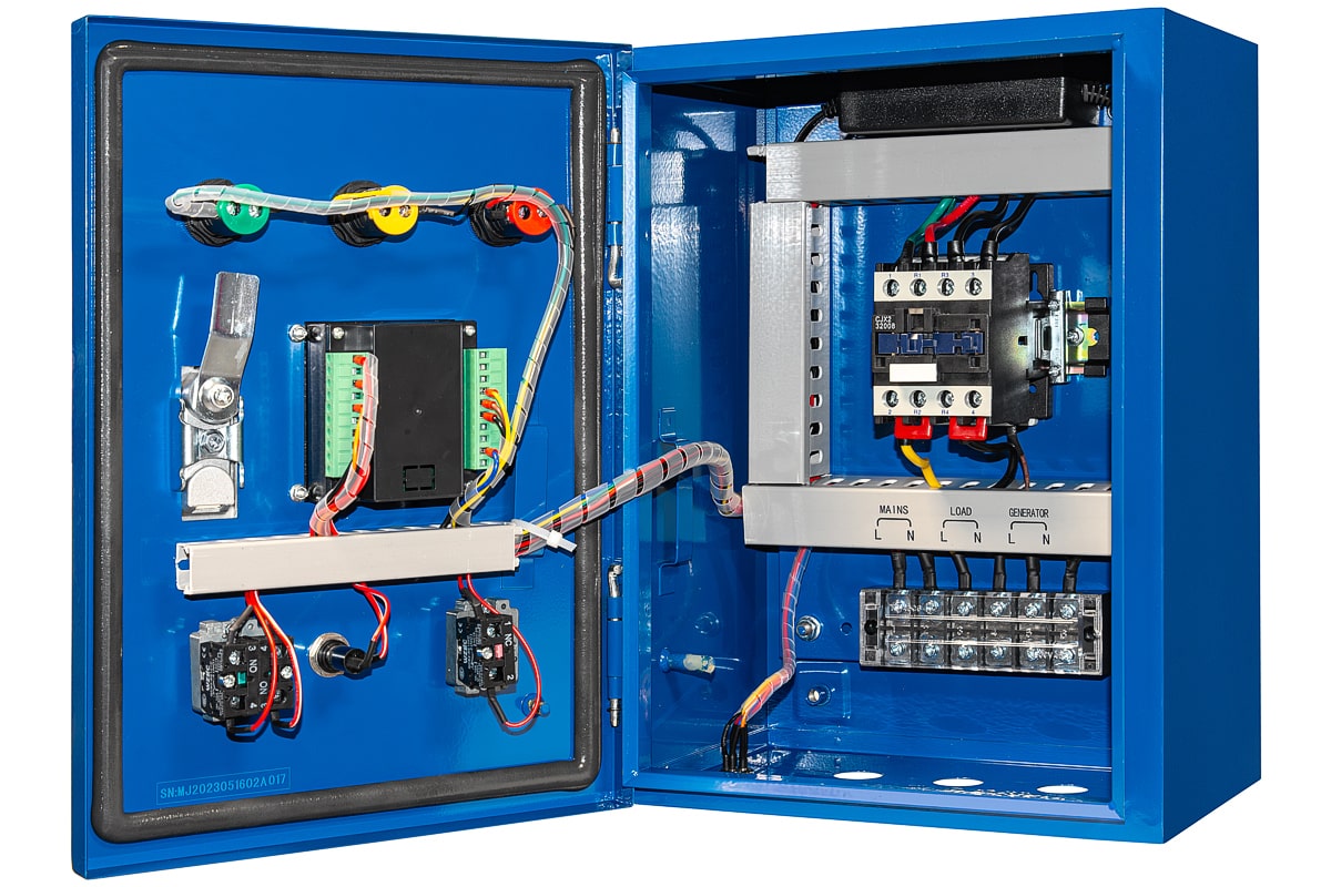 Предназначен для автоматического запуска дизельного генератора в момент пропадания основного источника электроэнергии и переключения нагрузки без вмешательства человека