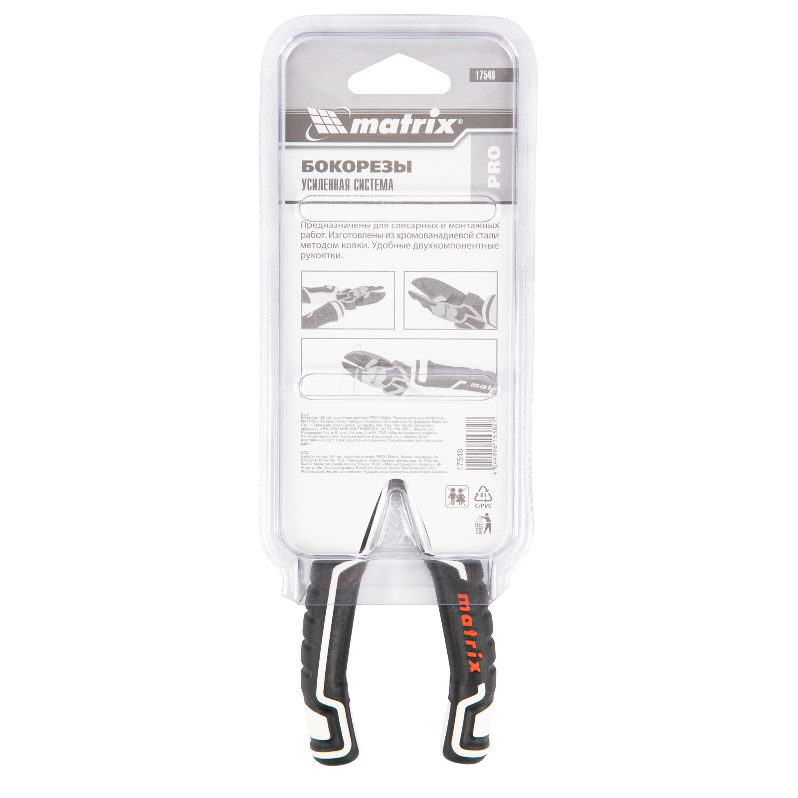Бокорезы Matrix PRO 17548 длиной 150 мм, с усиленной системой, используются в монтажных, слесарных и хозяйственных работах. Они предназначены для перерезания проводов, кабелей, проволоки, металлических и пластиковых конструкций. Усиленная конструкция позволяет перекусывать утолщенные детали и болты.