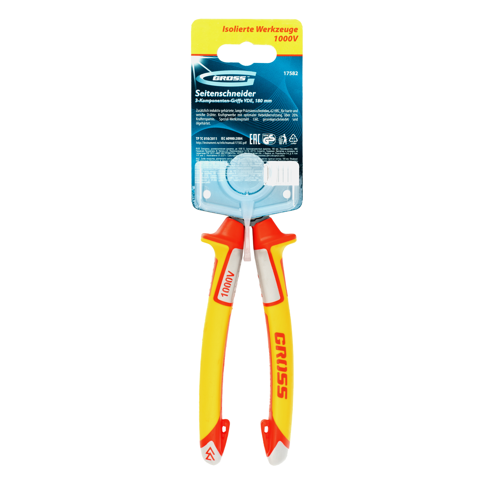 Бокорезы, диэлектрические рукоятки, до 1000 В, трехкомпонентные рукоятки, 180 мм Gross