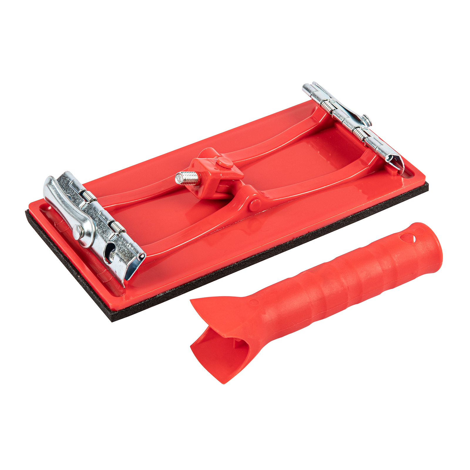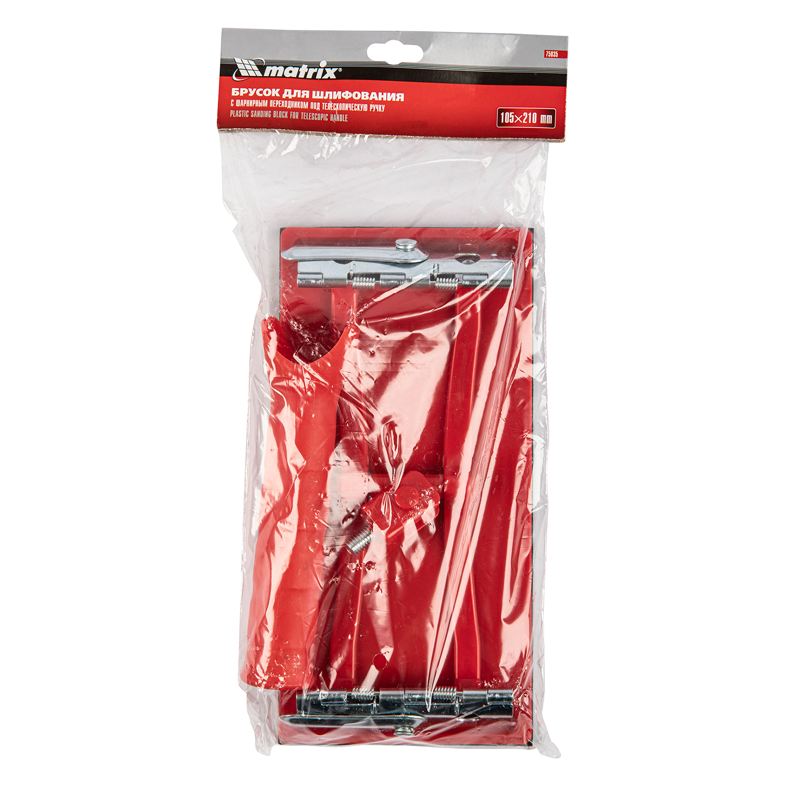 Шлифовальный брусок Matrix 75835 с подошвой размером 105 х 210 мм, с шарнирным переходником под телескопическую ручку, применяется совместно с абразивным листом или сеткой любой зернистости для обработки грунтованных и шпатлеванных поверхностей, изделий из древесины, металла, пластика и других материалов. Установка ручки позволяет шлифовать стены и потолки без стремянки, эффективно обрабатывать углы, скосы и прочие труднодоступные места.