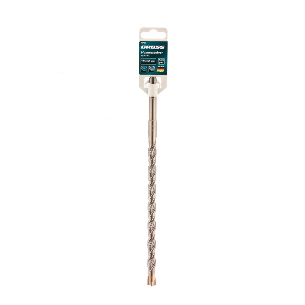 Бур по бетону Gross QUADRO 70780 размером 12 х 260 мм устанавливается в перфораторы с патроном SDS PLUS. Он рассчитан на профессиональное применение, выдерживает высокие нагрузки и справляется с бурением кирпича, камня, армированного бетона. Применяется при проведении ремонтных, строительных, монтажных/демонтажных работ.