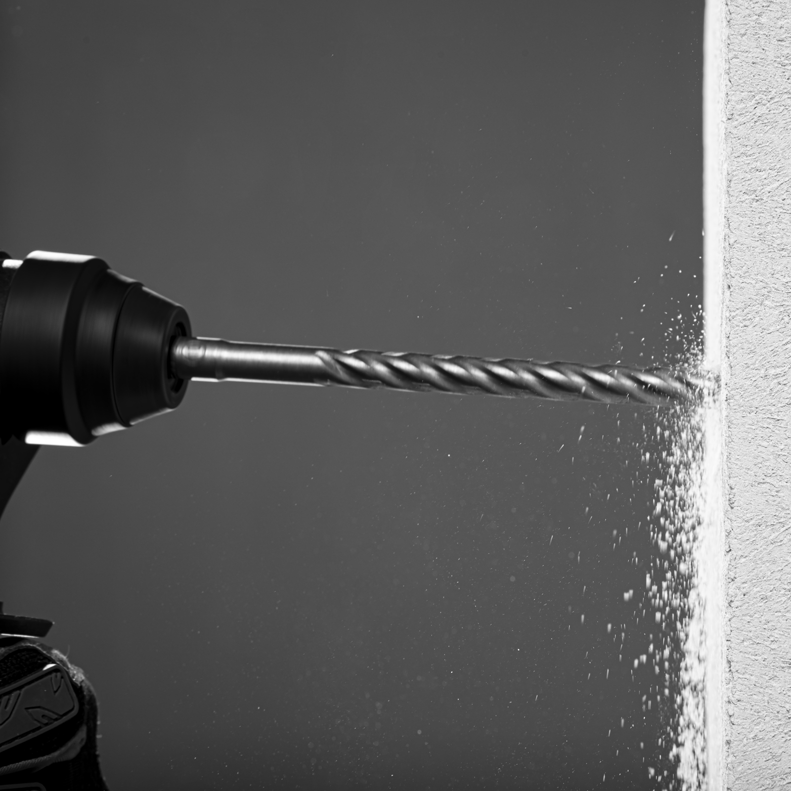 - Высокий ресурс — крестовая режущая пластина из сверхтвердого сплава карбида вольфрама 80–90 HRC долговечна, эффективно сверлит камень и не ломается при попадании в арматуру.