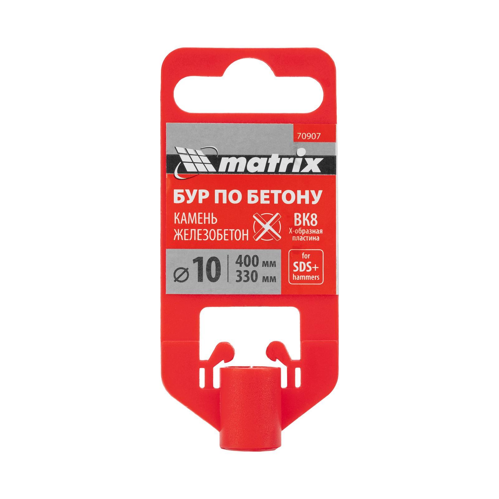 Бур по бетону Matrix 70907 длиной 400 мм, с хвостовиком SDS-plus и крестовой пластиной, предназначен для получения отверстий диаметром 10 мм в бетоне, камне и кирпиче. Крестовая пластина обеспечивает эффективную работу с твердыми материалами, в том числе армированным бетоном. Бур устанавливается в патрон перфоратора и используется во время проведения строительных работ.