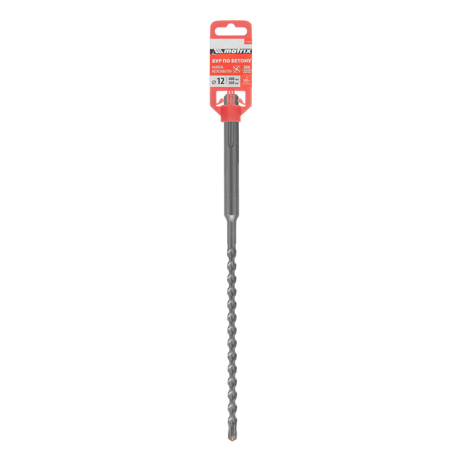 Бур по бетону Matrix 71227 размером 12 х 400 мм используется в качестве оснастки на тяжелых перфораторах с хвостовиком SDS MAX. Подходит для сверления глубоких отверстий в кирпиче и особо прочных материалах: армированном бетоне, природном и искусственном камне.