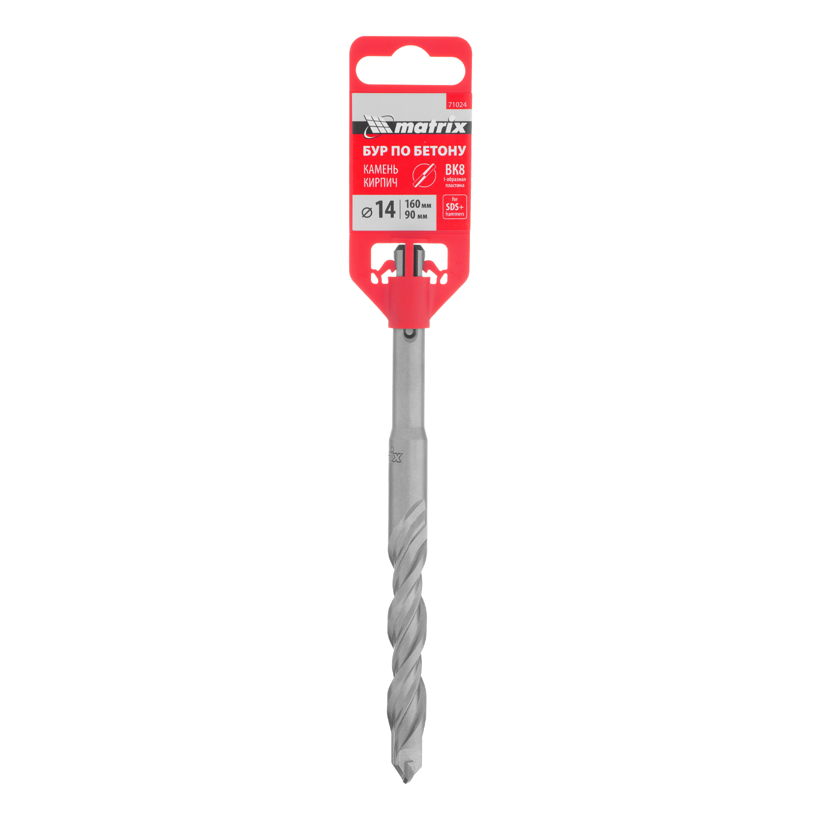 Бур по бетону Matrix 71024, 14 х 160 мм, SDS PLUS предназначен для установки на перфоратор и позволяет получать отверстия диаметром 14 мм в бетоне, камне и кирпиче. Он эффективно решает поставленные задачи благодаря режущей пластине из высокотвердого сплава карбида вольфрама ВК8 твердостью 80-90 HRC.