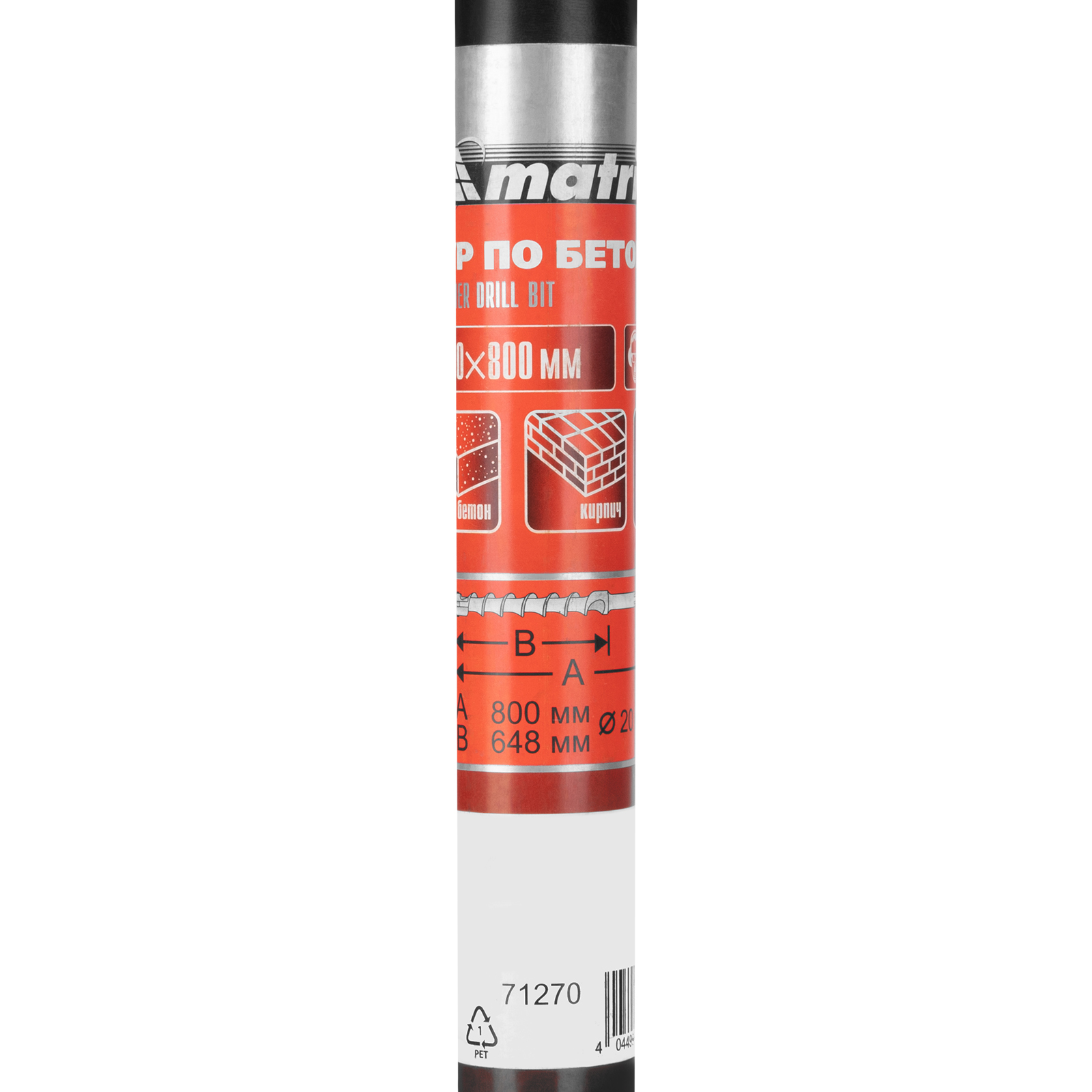 Бур по бетону Matrix 71270 размером 20 х 800 мм используется в качестве оснастки на тяжелых перфораторах с хвостовиком SDS MAX. Подходит для сверления глубоких отверстий в кирпиче и особо прочных материалах: армированном бетоне, природном и искусственном камне.
