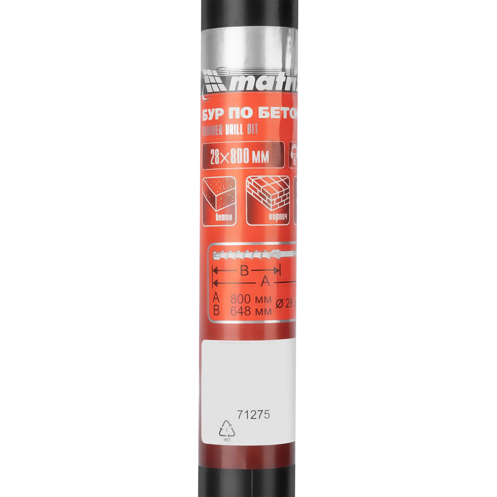 Бур по бетону Matrix 71275 размером 28 х 800 мм используется в качестве оснастки на тяжелых перфораторах с хвостовиком SDS MAX. Подходит для сверления глубоких отверстий в кирпиче и особо прочных материалах: армированном бетоне, природном и искусственном камне.