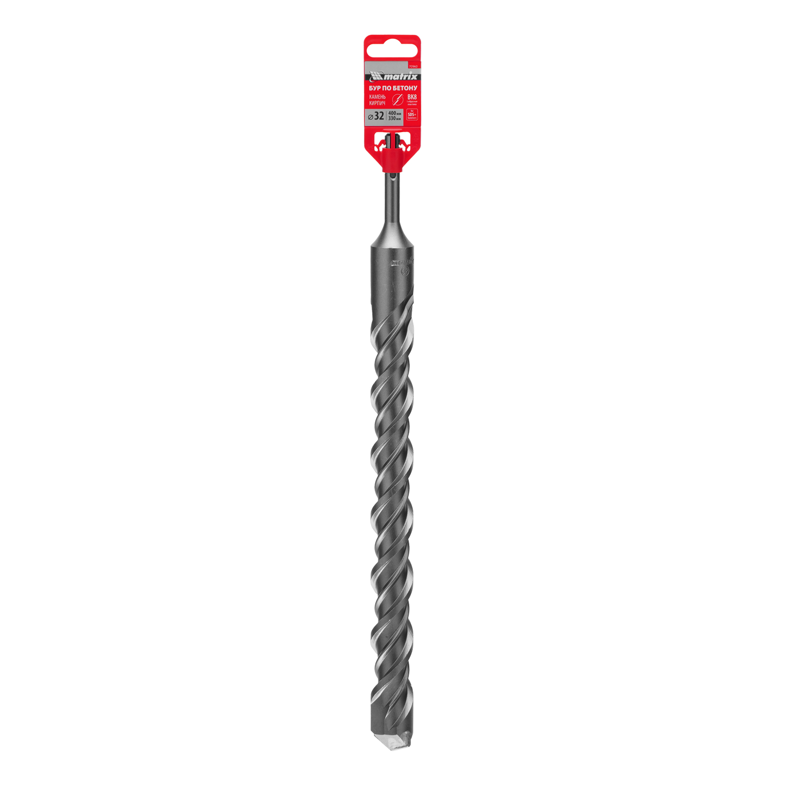 Бур по бетону Matrix 70960 длиной 400 мм, с хвостовиком SDS PLUS, предназначен для установки на перфоратор и получения отверстий диаметром 32 мм в бетоне, камне и кирпиче. Позволяет эффективно решать поставленные задачи благодаря режущей пластине из высокотвердого сплава карбида вольфрама ВК8 твердостью 80-90 HRC.