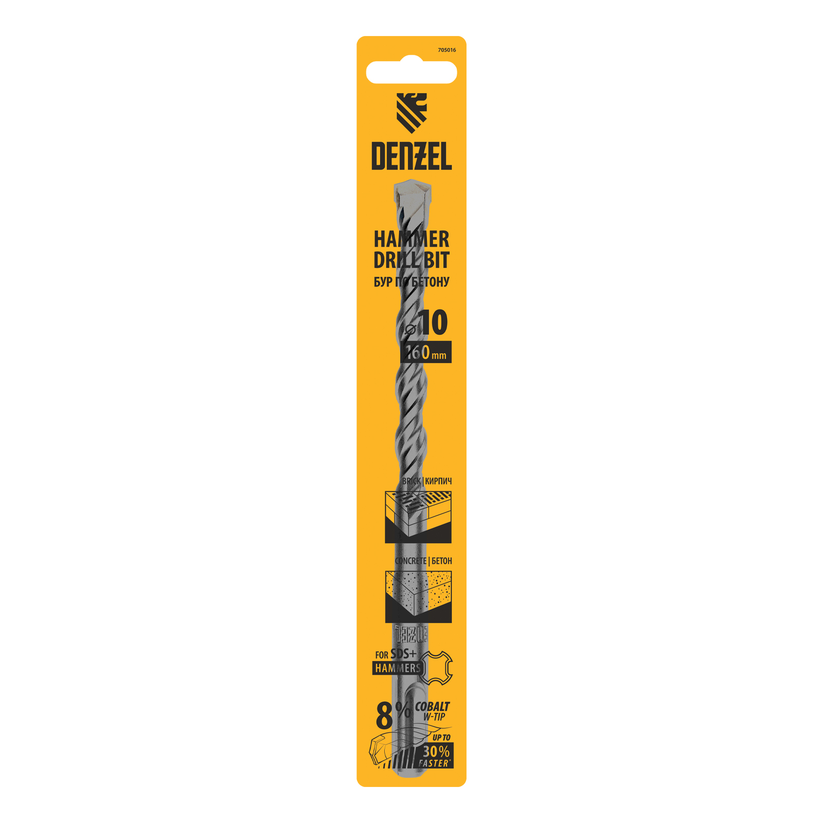 Бур по бетону Denzel Cobalt W-tip 705016 размером 10 х 160 мм, с хвостовиком SDS-plus и двойной спиралью, предназначен для сверления бетона, кирпича и камня. Используется в качестве оснастки для перфораторов с патроном SDS-plus. Бур оптимален для проведения строительных, ремонтных, монтажных работ.