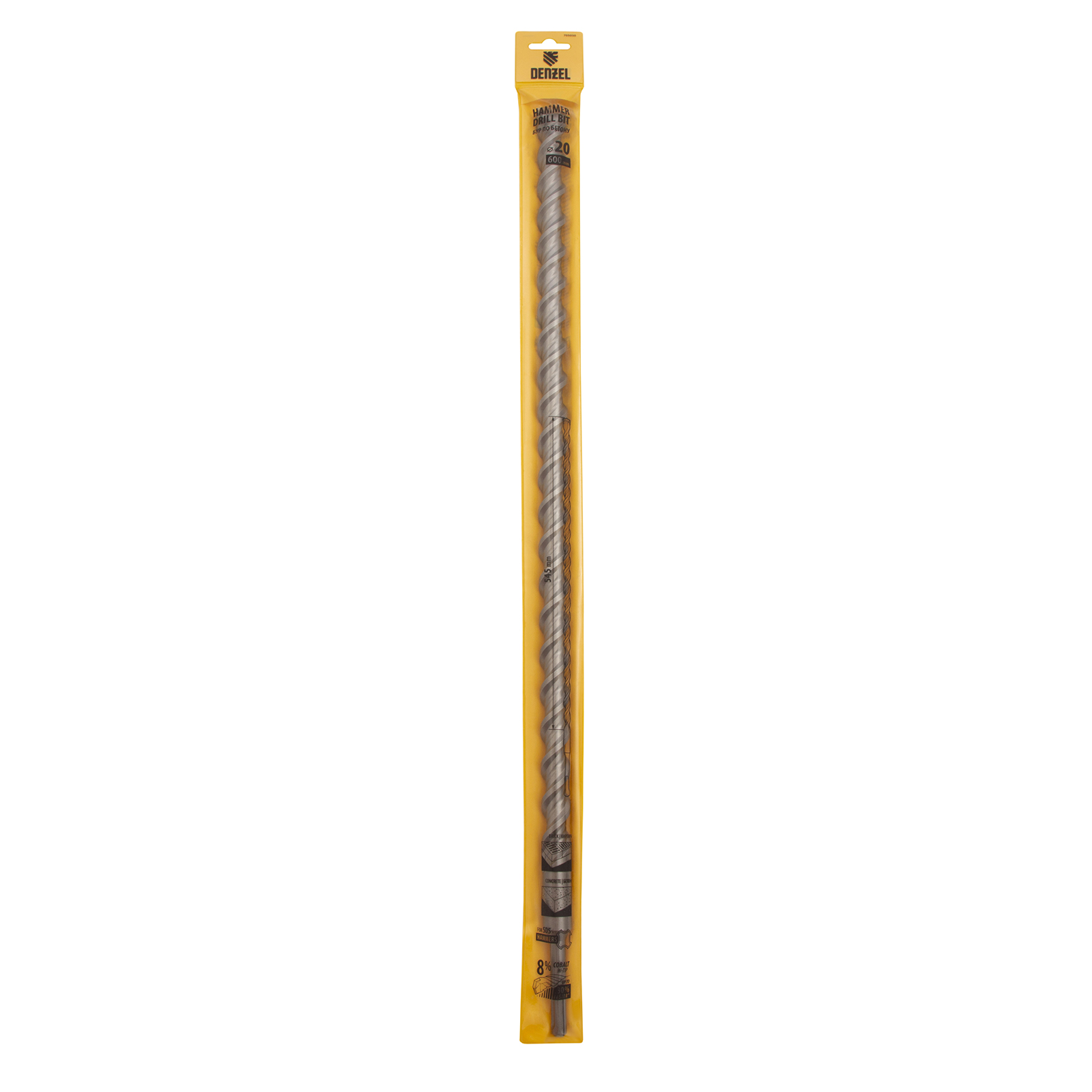 Бур по бетону, двойная спираль, три пылеотводящие кромки, 20 x 600 мм DENZEL