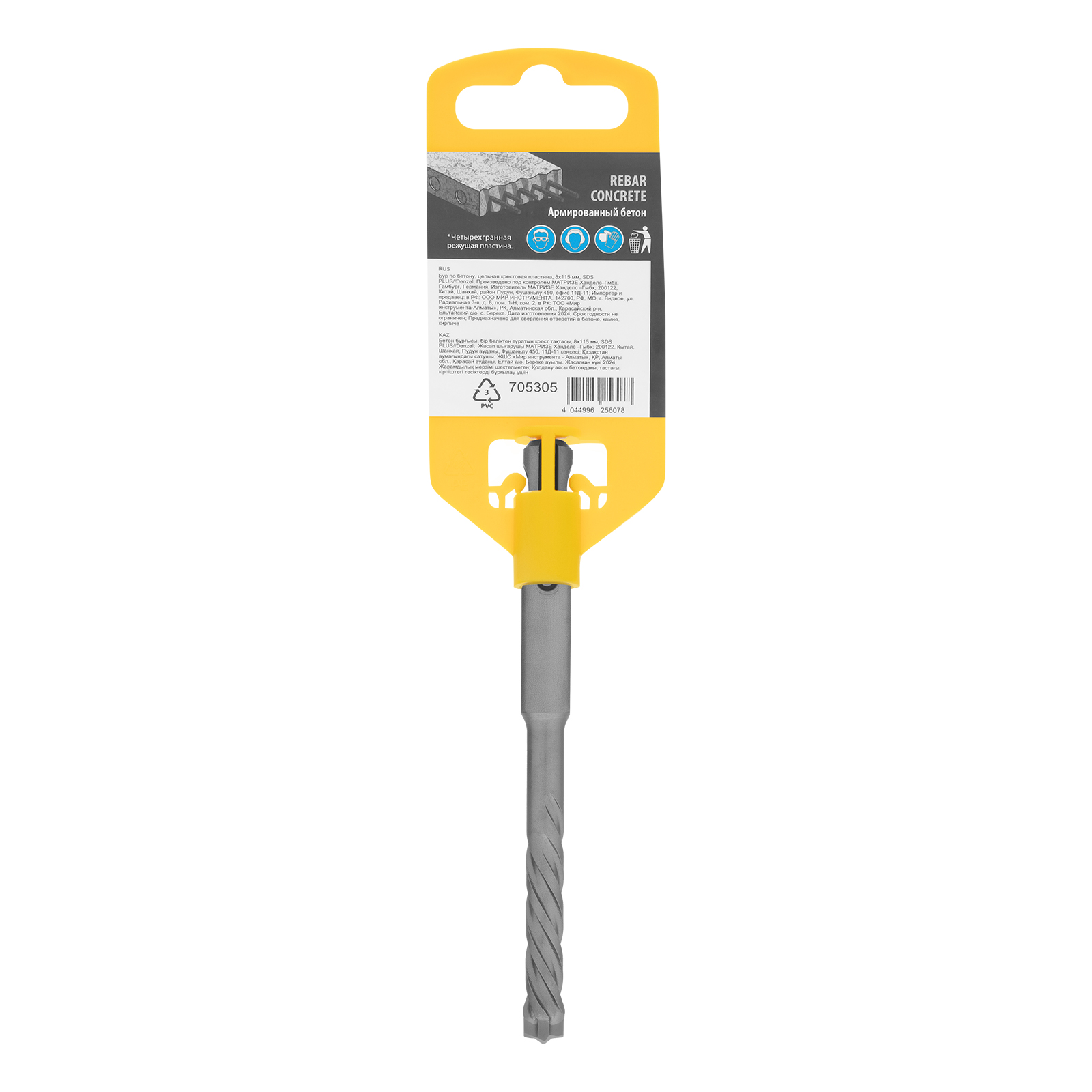 Бур по бетону Denzel 705305 длиной 115 мм, с цельной крестовой пластиной и хвостовиком SDS-plus — оснастка для перфораторов, предназначенная для получения отверстий диаметром 8 мм в бетоне, кирпиче, камне. Благодаря цельному карбидному наконечнику с 4 режущими кромками бур оптимален для работы с материалами высокой твердости, в том числе с армированным бетоном. Оснастка превосходит большинство аналогов по своим рабочим качествам и подходит для профессионального использования.