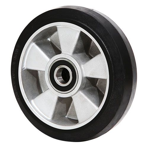 Колесо резиновое D180 предназначено для тележек и складской техники. Контактный слой изготовлен из резины. В оси установлен шариковый подшипник. Колесо оснащено алюминиевым ободом. Обладает высокой износостойкостью и эластичностью. Не оставляет следов на напольных покрытиях.