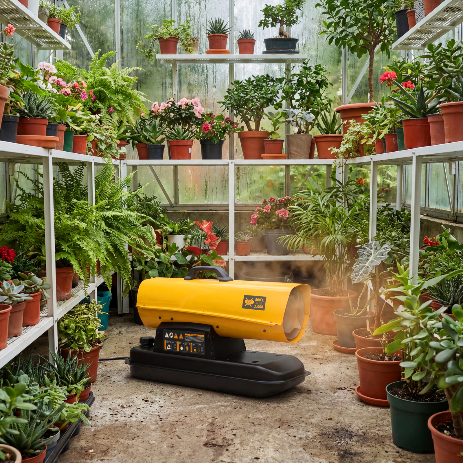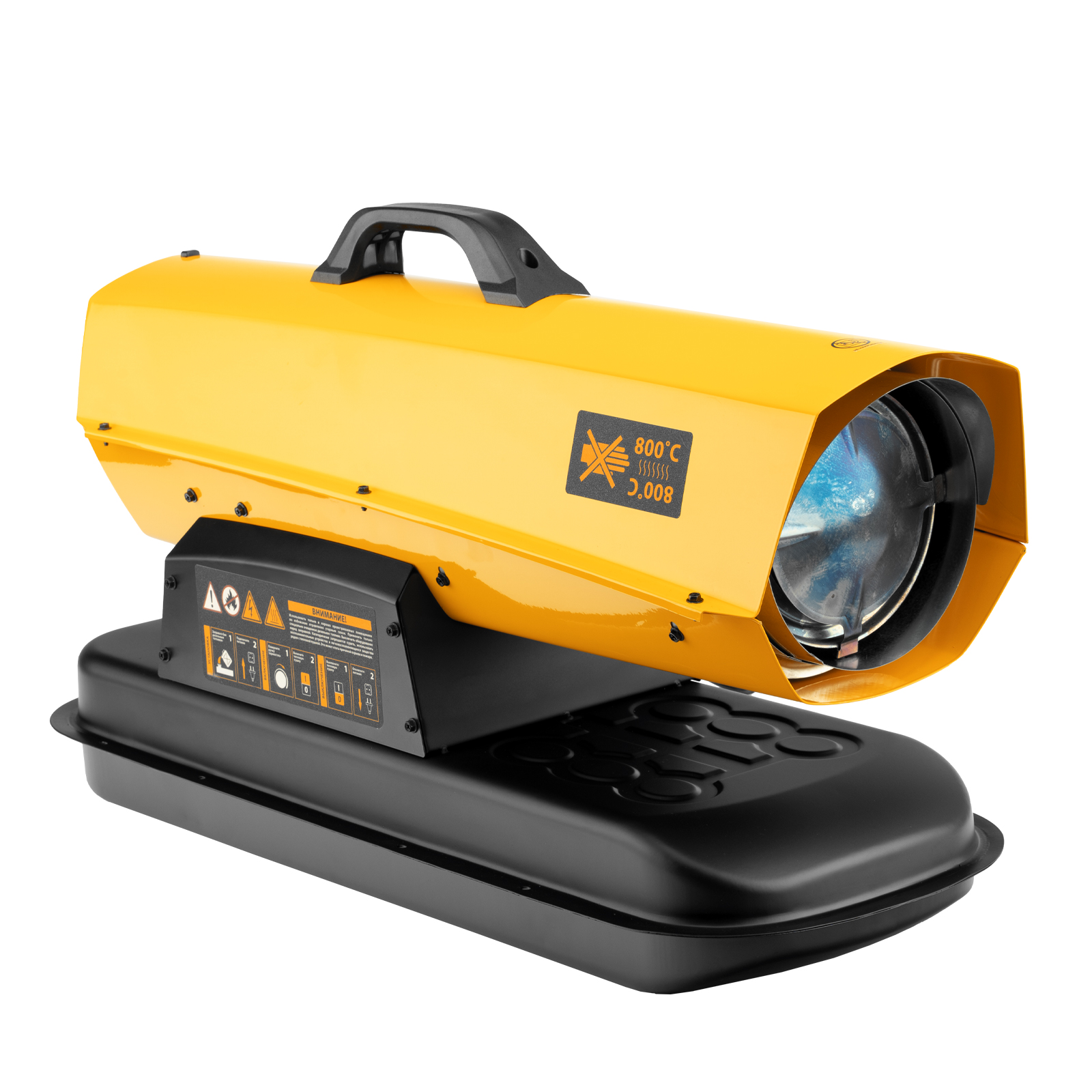 Дизельная тепловая пушка Denzel DHG-25i 96483 номинальной тепловой мощностью 25 кВт и производительностью 600 куб. м/ч, с прямым типом нагрева, с электронным термостатом, предназначена для обогрева цехов, складов, теплиц и других нежилых помещений. Используется в строительстве и на производстве. Пушка характеризуется низким расходом топлива: полного бака хватает на 10 часов работы. Важно: в обогреваемом помещении необходимо обеспечить хорошую вентиляцию.