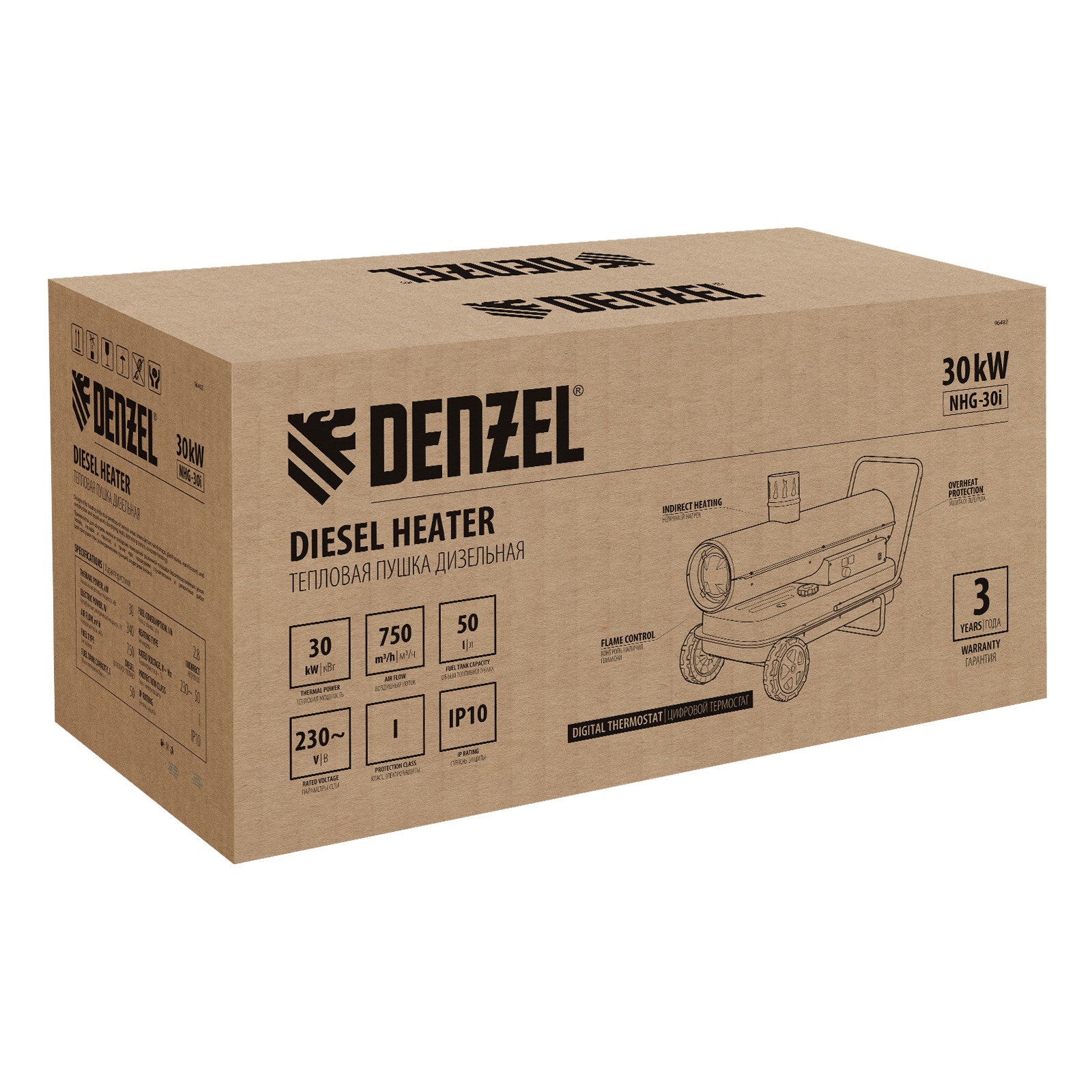 Дизельная тепловая пушка NHG-30i, 30 кВт, 750 м3/ч, непрямой нагрев, цифровой термостат Denzel в Казани