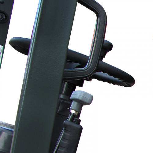 Долговечные износостойкие пневматические шины обеспечивают повышенную проходимость погрузчика, сводят к минимуму риск повреждения хрупких грузов, делают работу более комфортной. Пространство для ног оператора увеличено, что позволяет занять максимально удобное положение. Для быстрой и удобной посадки в кабину на стойке установлена специальная ручка с противоскользящим покрытием. Сиденье удобное, как и рулевая колонка, оно имеет функцию регулировки. Грузоподъемность модели составляет 2500 кг. Максимальная высота, на которую выполняется подъем грузов, равна 3 м.