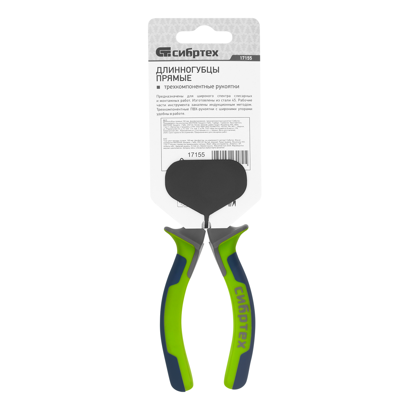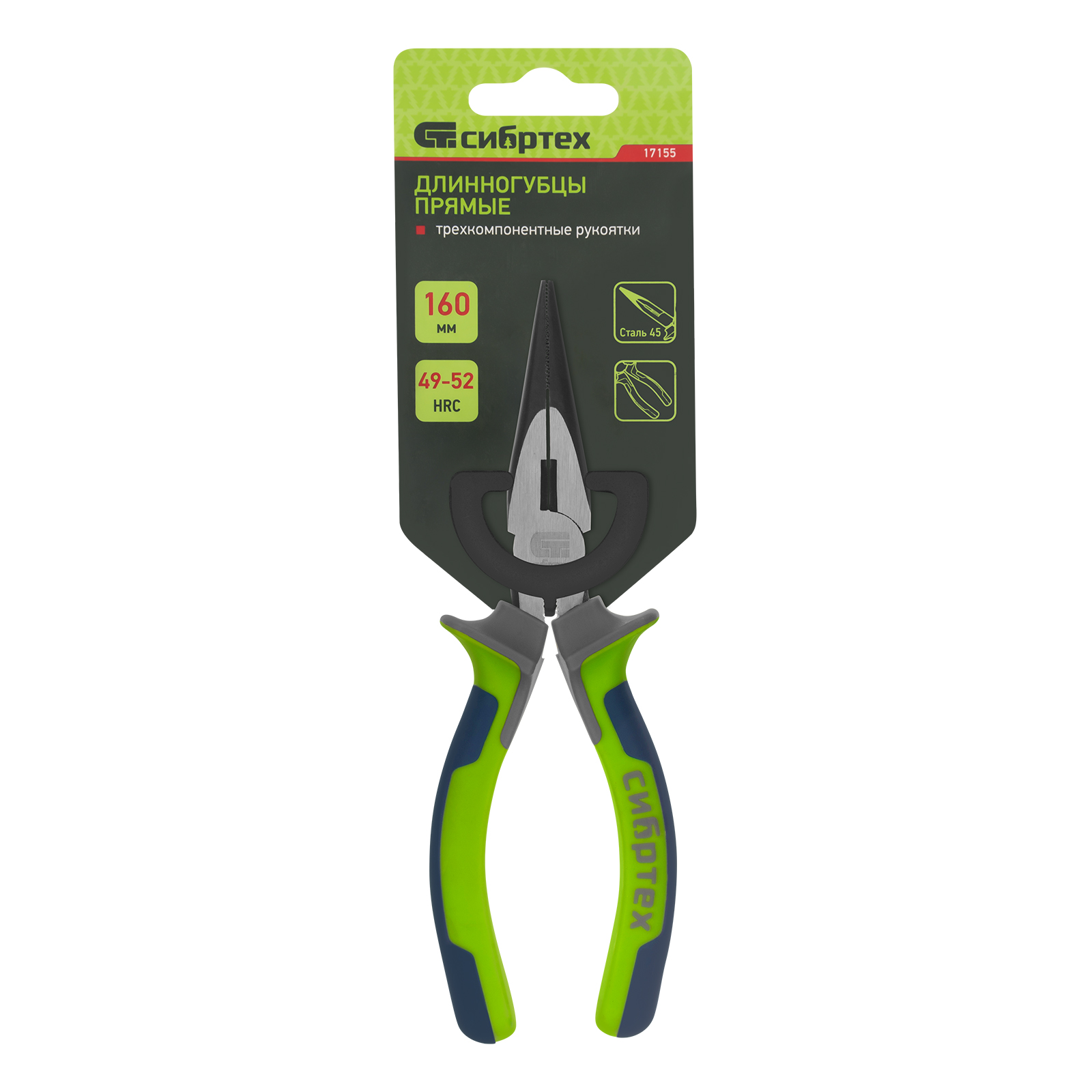 Длинногубцы прямые 160 мм, фосфатирование, трехкомпонентные рукоятки Сибртех