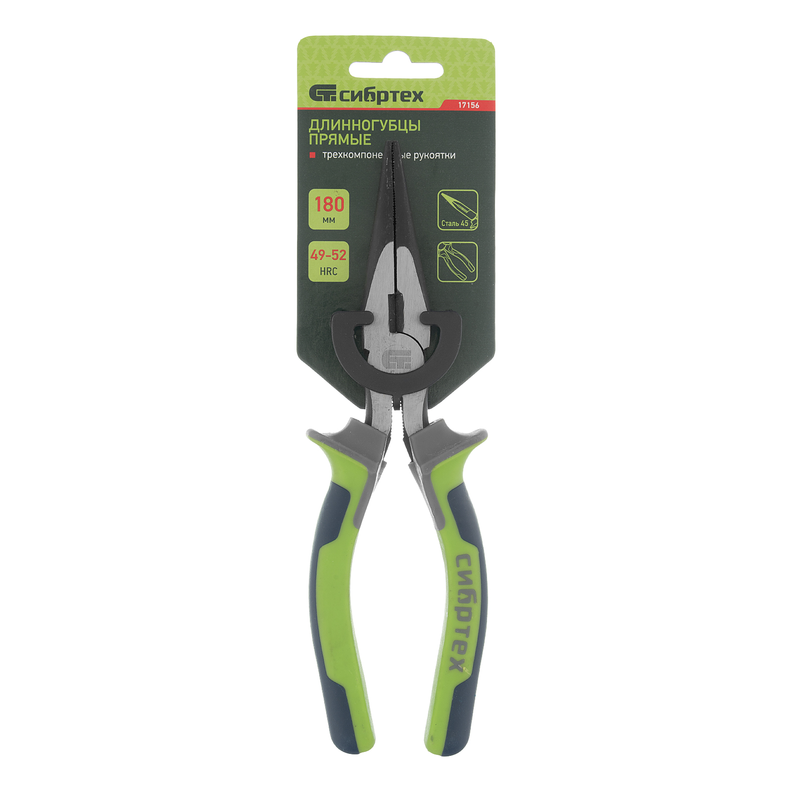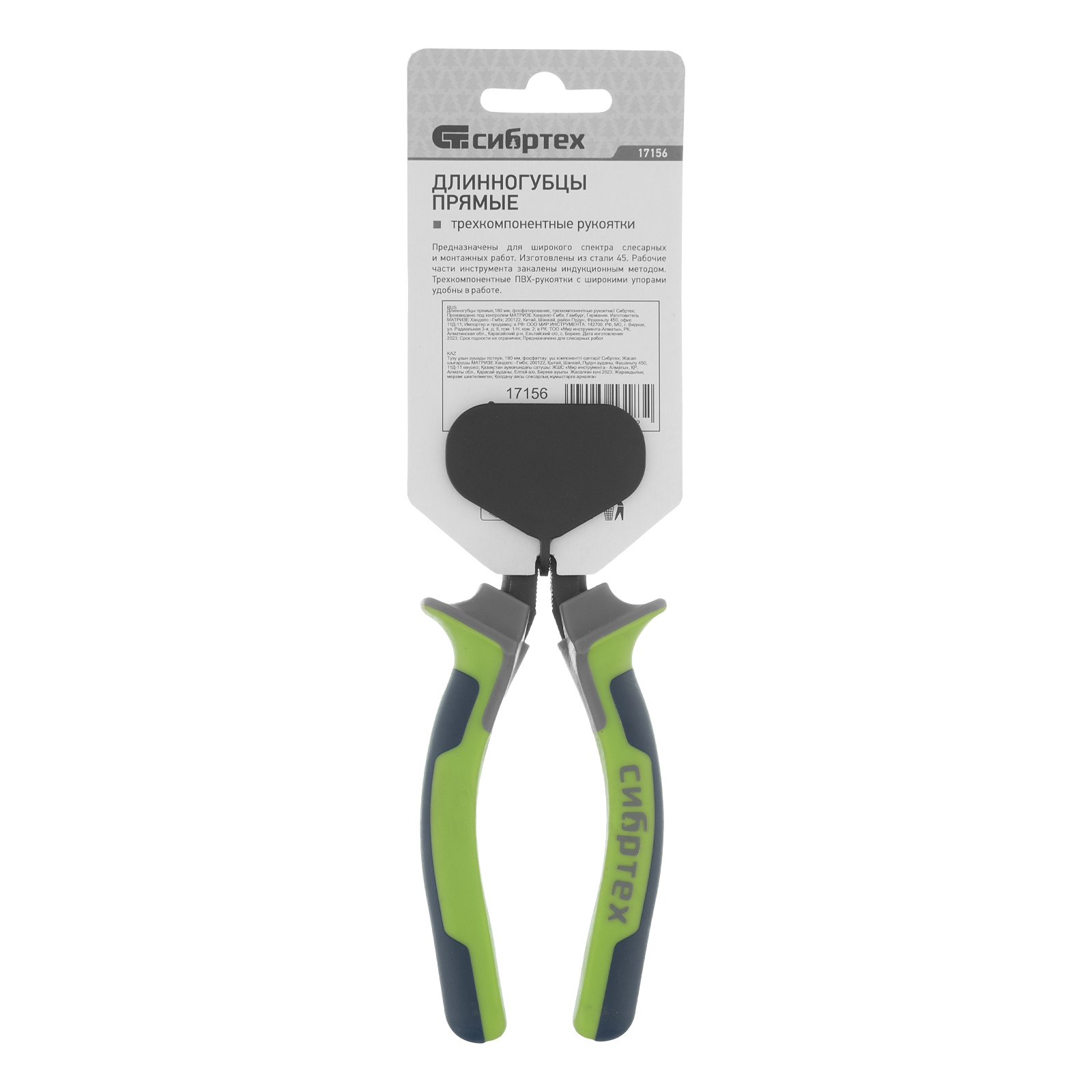 Длинногубцы прямые 180 мм, фосфатирование, трехкомпонентные рукоятки Сибртех