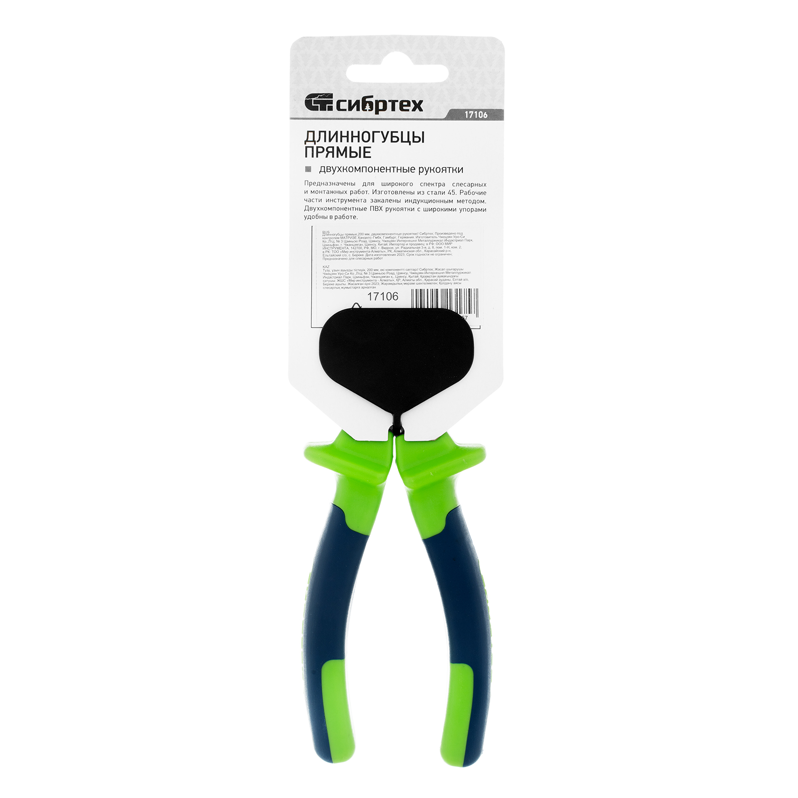 Длинногубцы прямые, 200 мм, двухкомпонентные рукоятки Сибртех