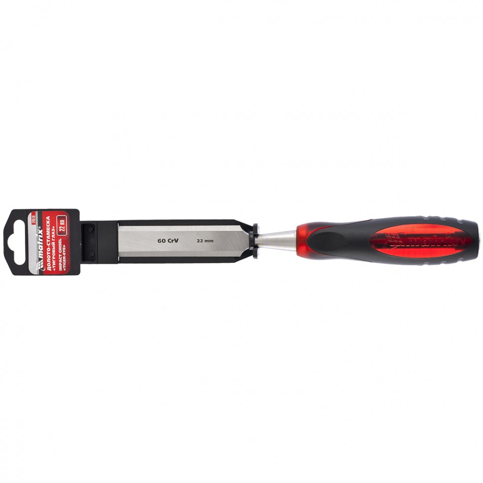 Долото-стамеска Matrix «Тигровый глаз» 24516 с полотном шириной 22 мм и двухкомпонентной обрезиненной рукояткой используется в столярном и плотницком деле, в производстве мебели. Позволяет вырезать углубления, формировать пазы, зачищать шипы и гнезда, снимать фаски. Инструмент выдерживает удары киянкой или молотком, т. к. металлический затыльник защищает его от деформации. Долото относится к профессиональному ручному инструменту, но может применяться и в домашних условиях.