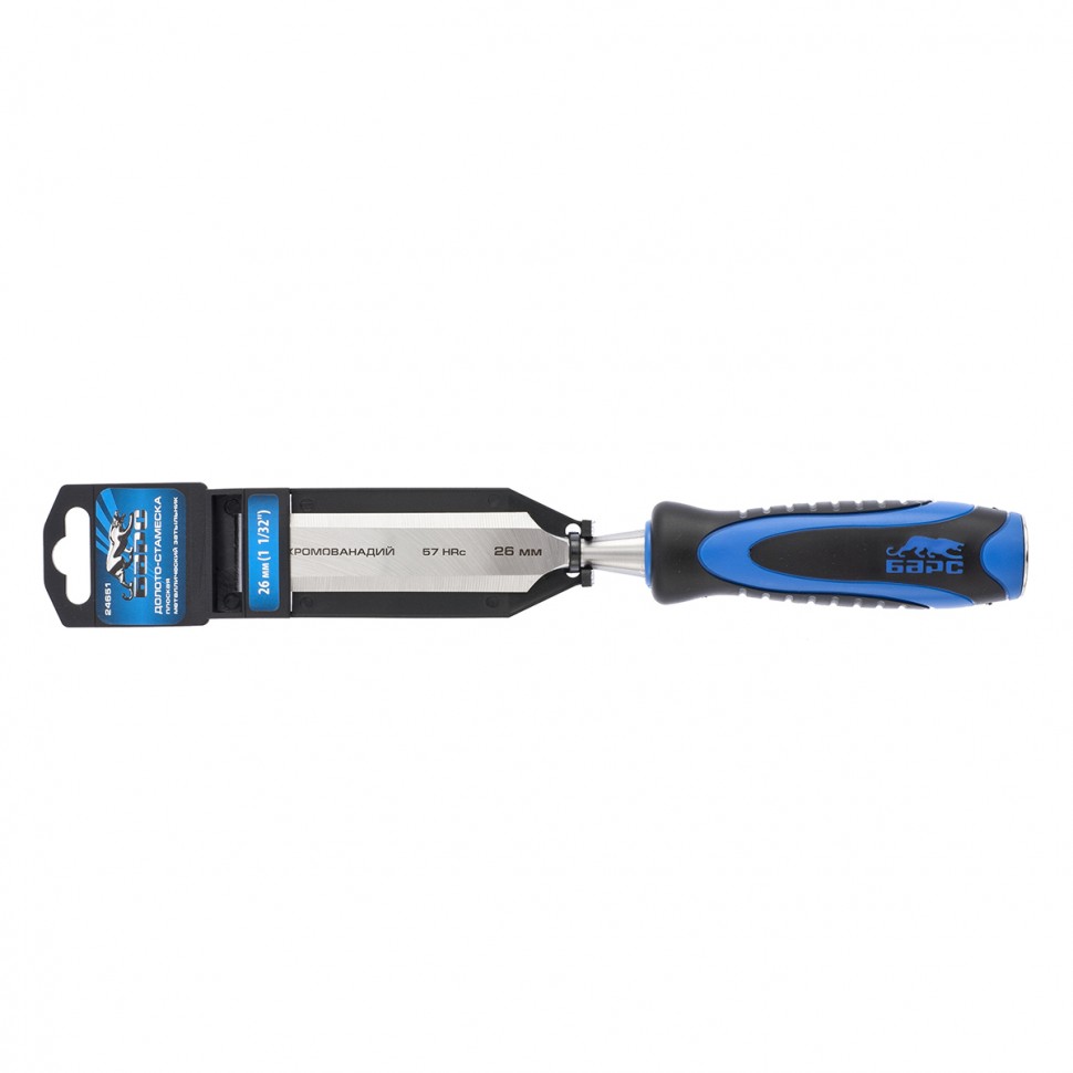 Долото-стамеска, плоская, 26 мм, двухкомпонентная рукоятка, металлический затыльник Барс