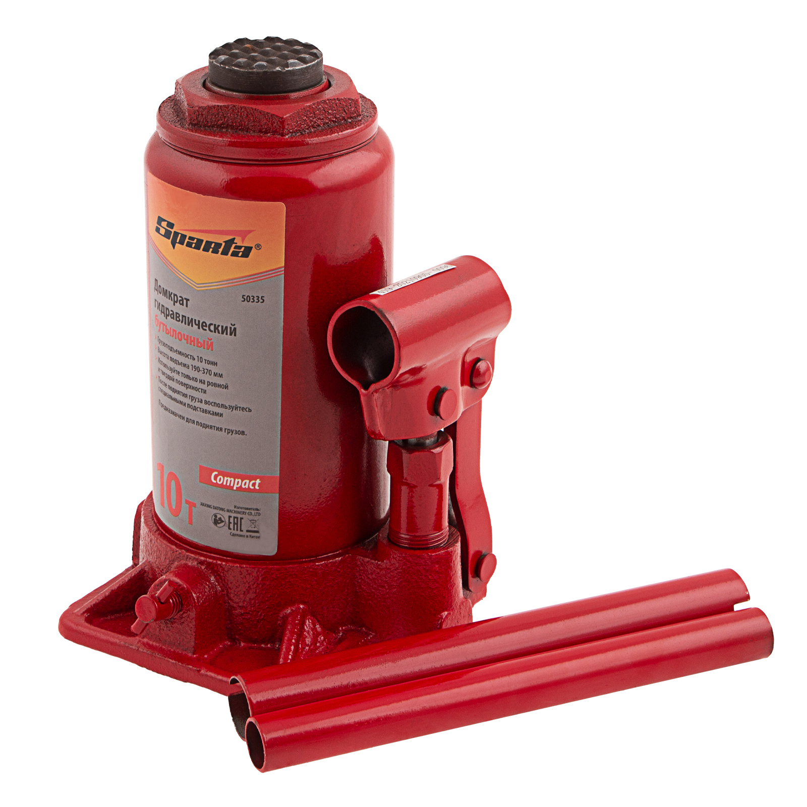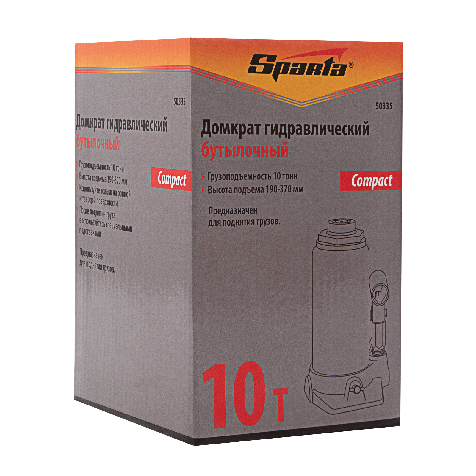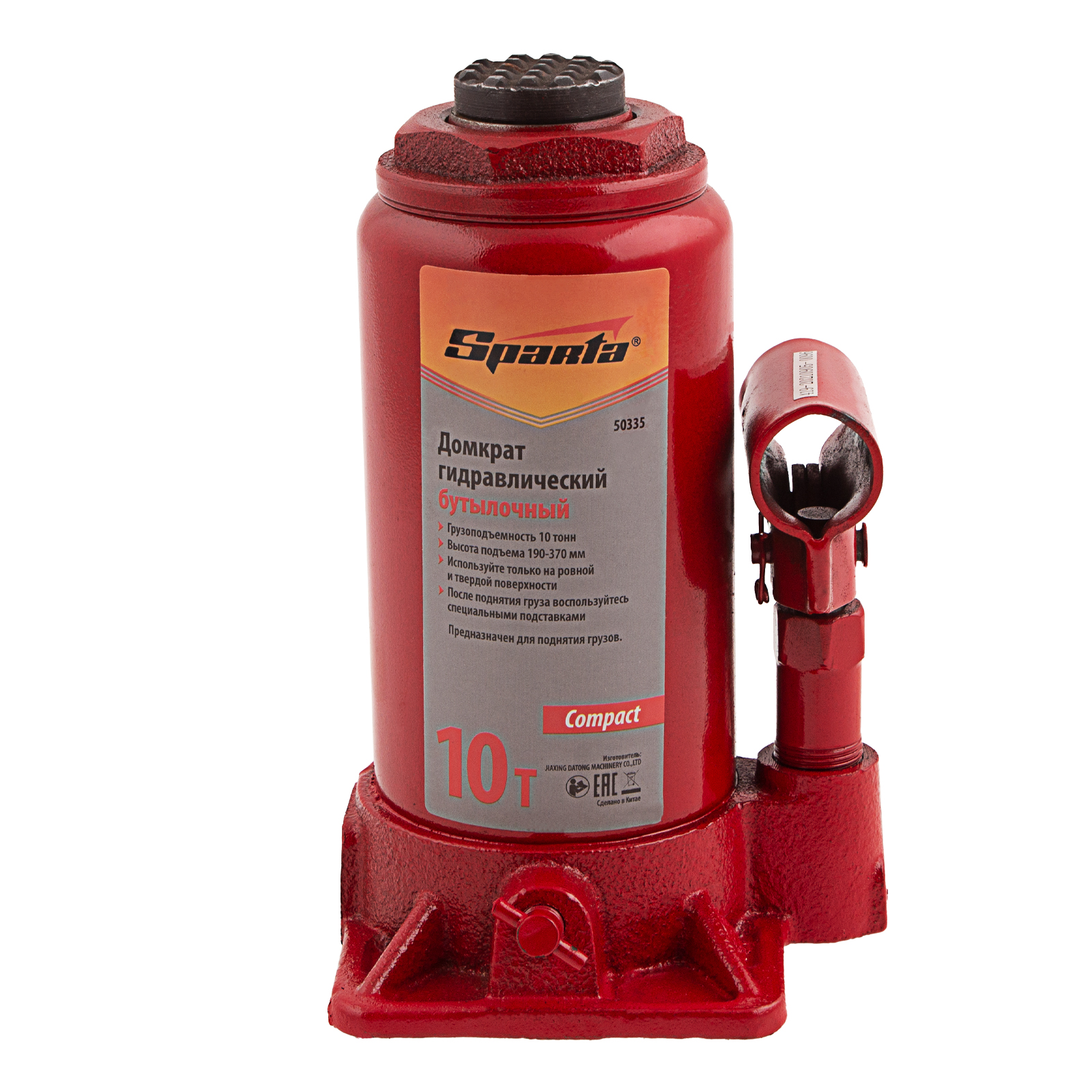 Домкрат гидравлический бутылочный 10 т, h подъема 190-370 мм Sparta Compact