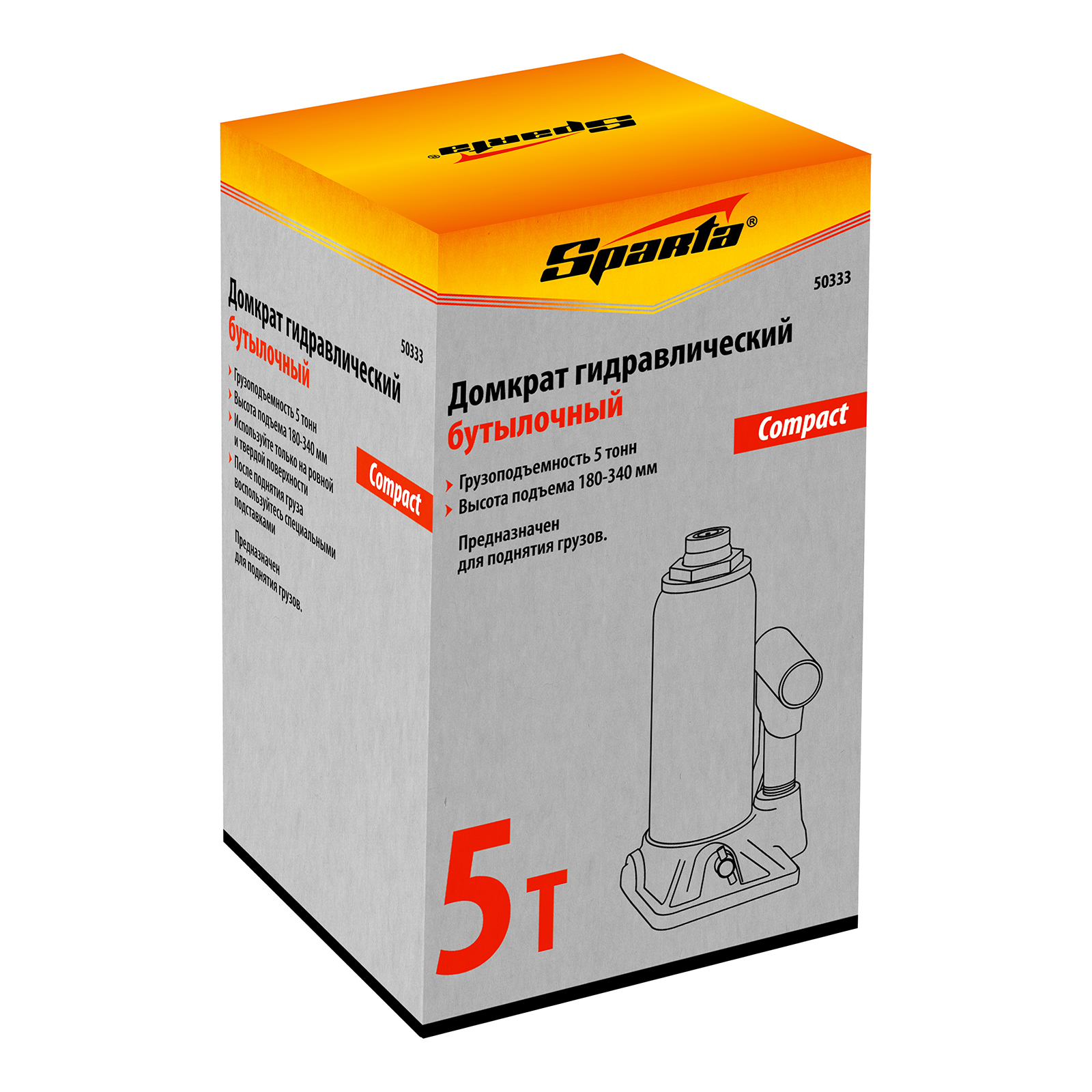 Домкрат гидравлический бутылочный 5 т, h подъема 180-340 мм Sparta Compact