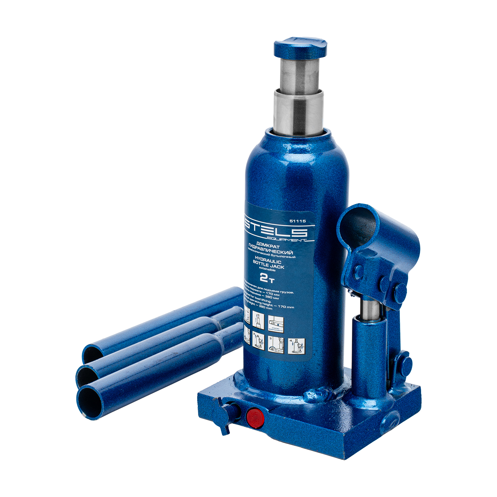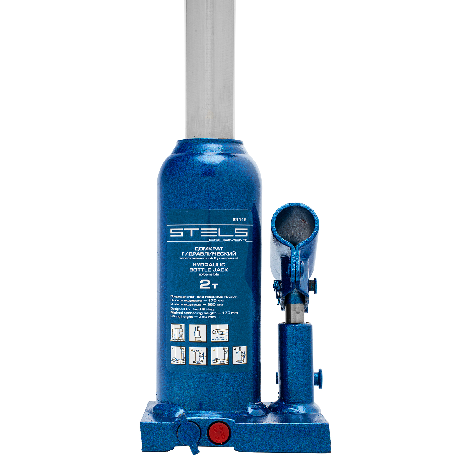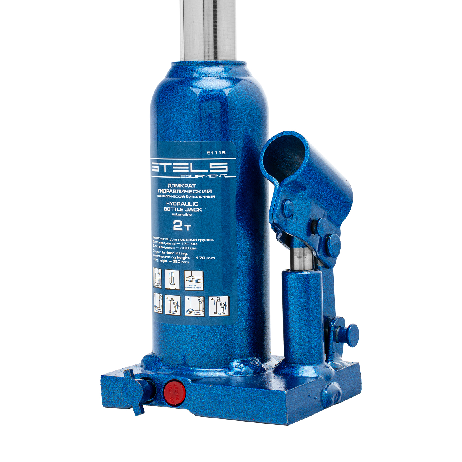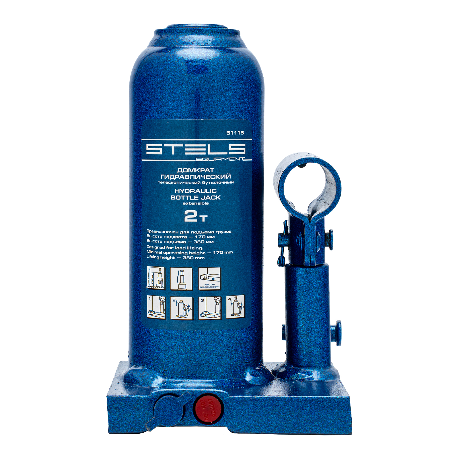 Гидравлический бутылочный телескопический домкрат Stels 51115 используется для поднятия грузов весом до 2 т с на высоту 170-380 мм. Не требует больших усилий и оптимален для автомобилей с большим клиренсом. Домкрат можно использовать в гараже для самостоятельного ремонта машины или в автосервисе для решения профессиональных задач.