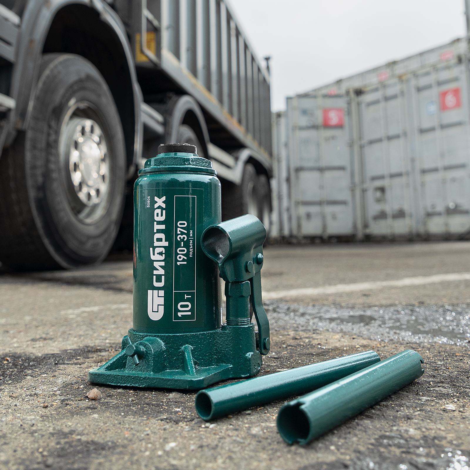 Домкрат гидравлический бутылочный Сибртех 50806 предназначен для подъема грузов массой до 10 т на высоту от 190 до 370 мм. Не требует больших усилий от пользователя и значительно облегчает рабочий процесс. Домкрат будет полезен при проведении техобслуживания машины в автосервисе или гараже.