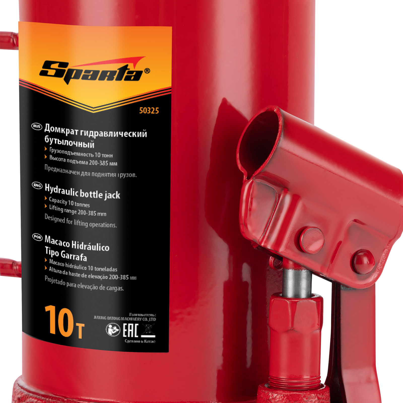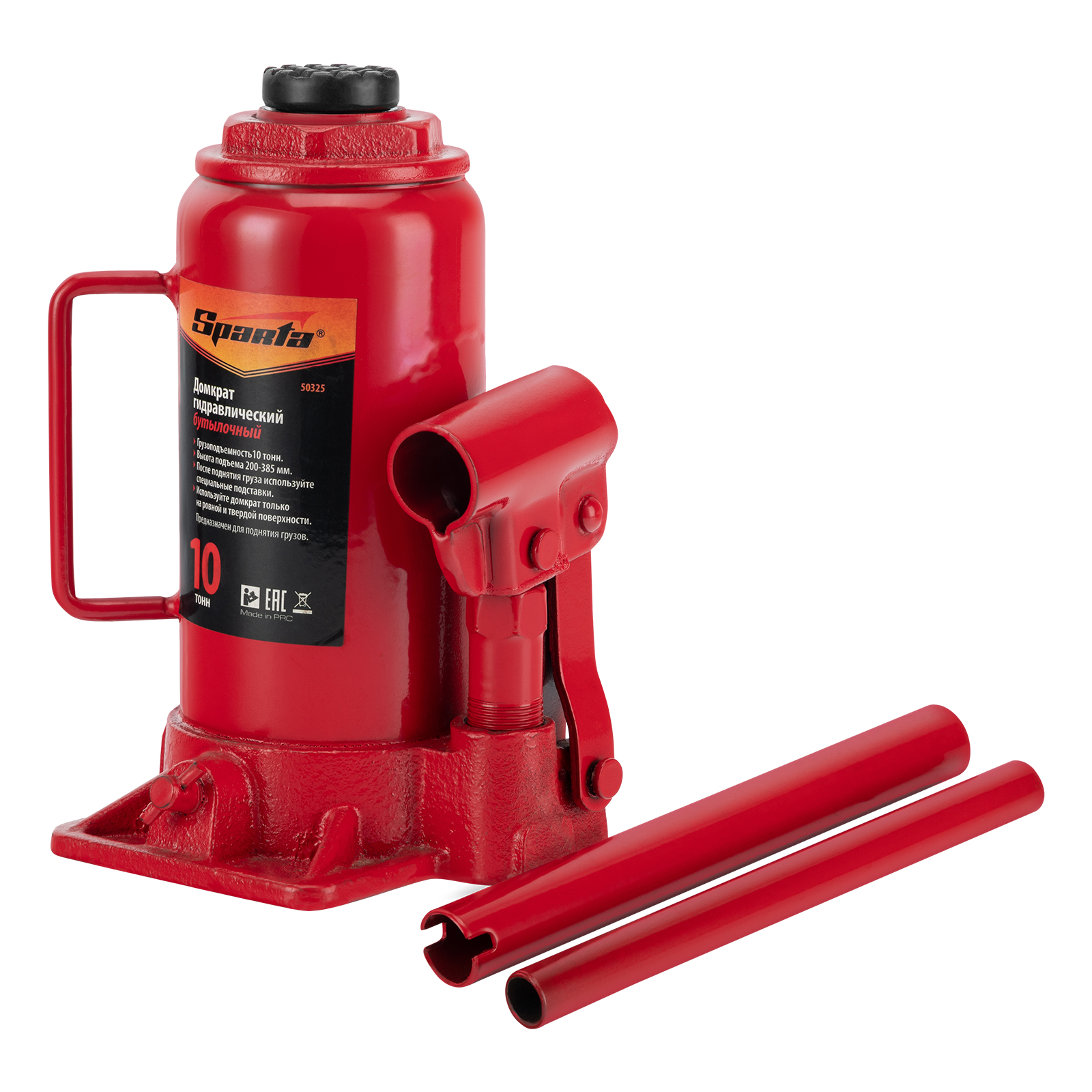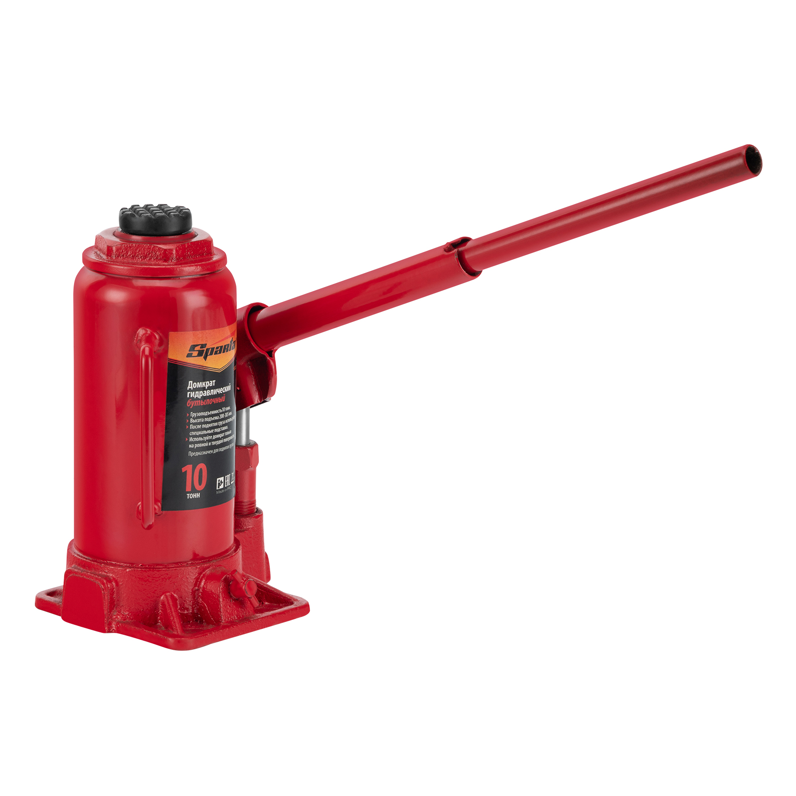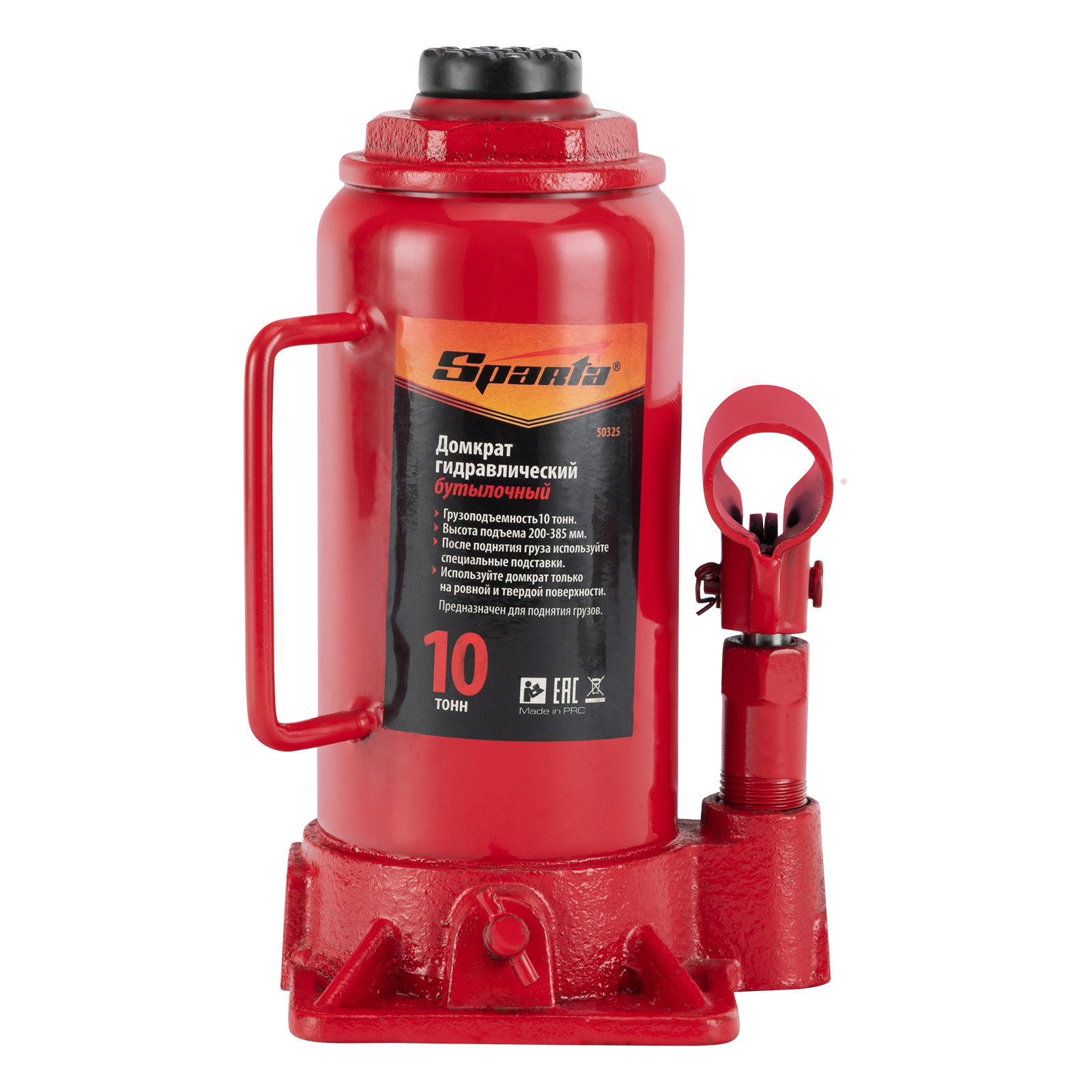 Домкрат гидравлический бутылочный, 10 т, h подъема 200-385 мм Sparta