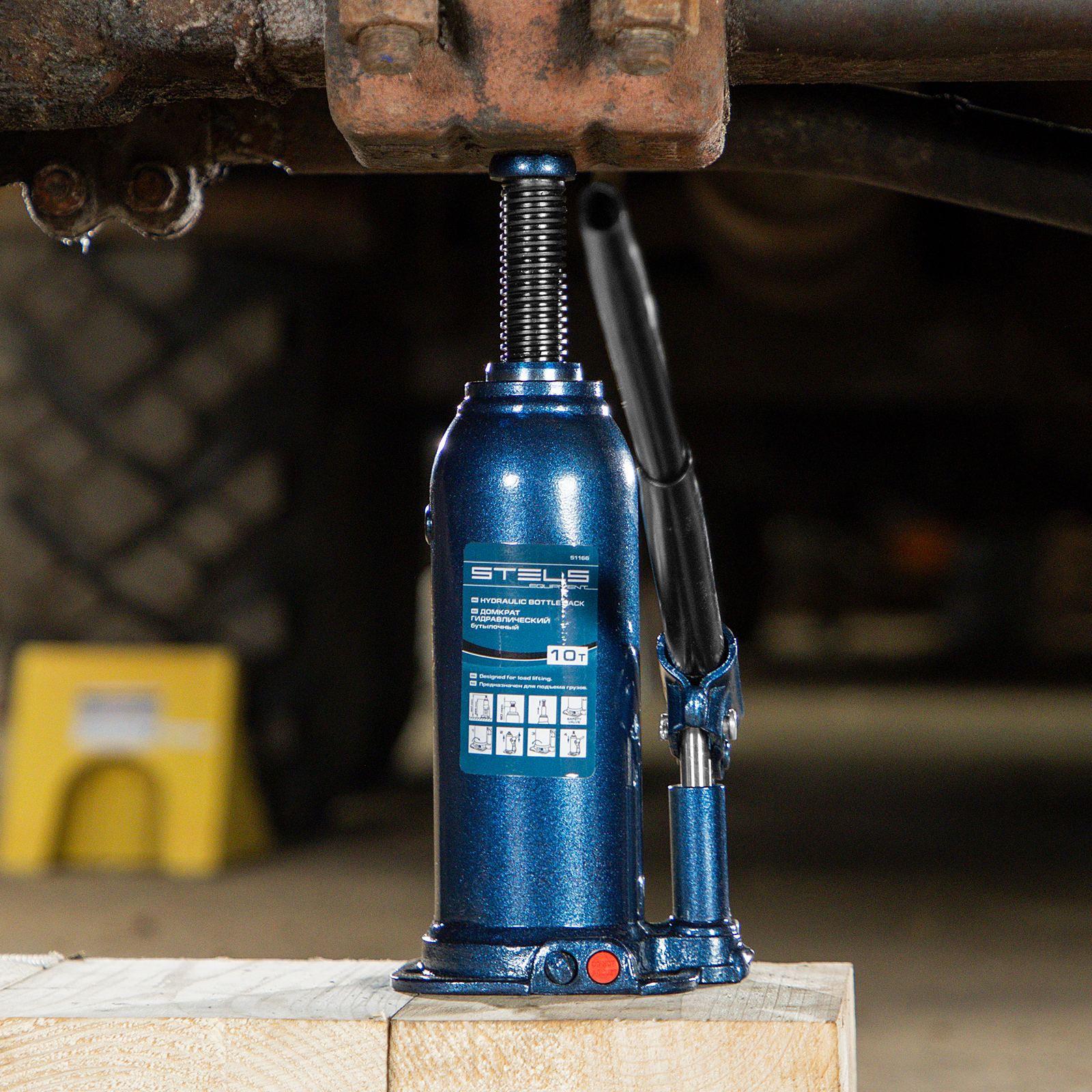 - Безопасная эксплуатация — благодаря предохранительному клапану домкрат не поднимает грузы тяжелее 10 т.
