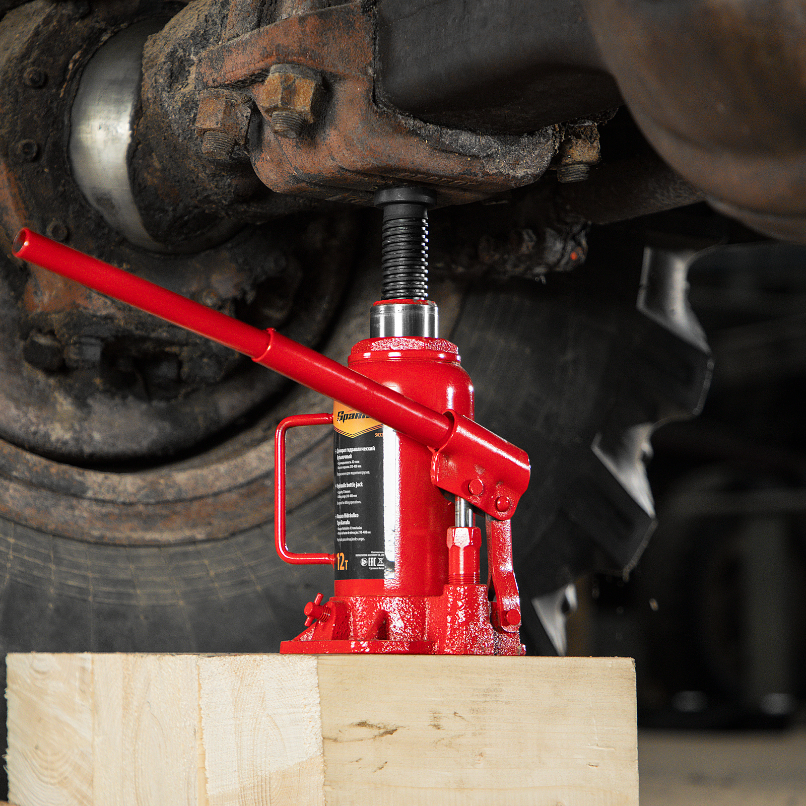 Гидравлический бутылочный домкрат Sparta 50326 рассчитан на подъем грузов весом до 12 т на высоту от 210 до 400 мм. Он пригодится как автолюбителям в гараже, так и профессиональным мастерам в автосервисах. Домкрат обеспечивает плавный подъем груза без особых усилий со стороны пользователя.