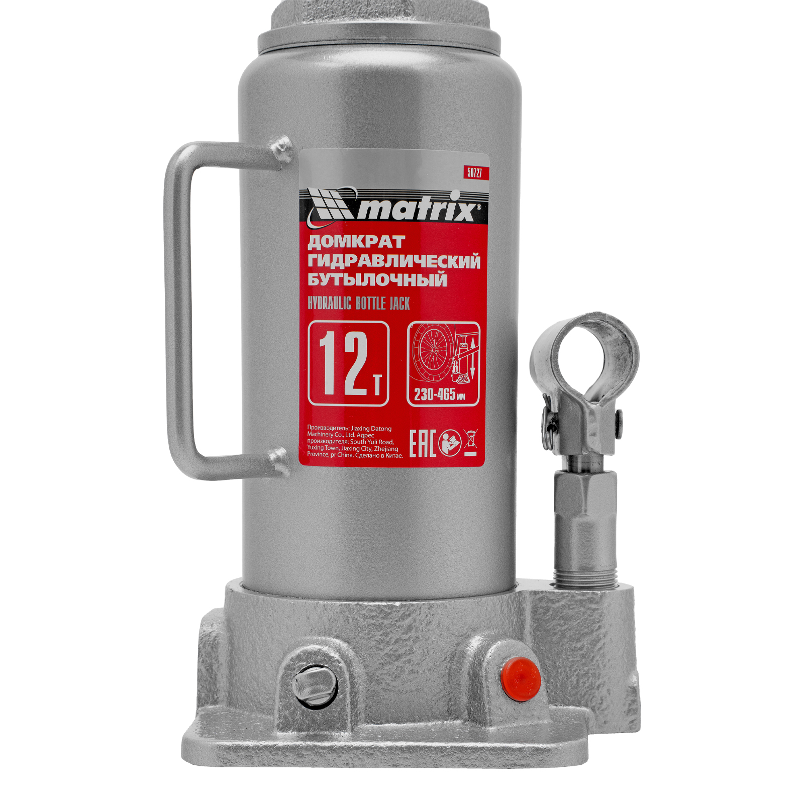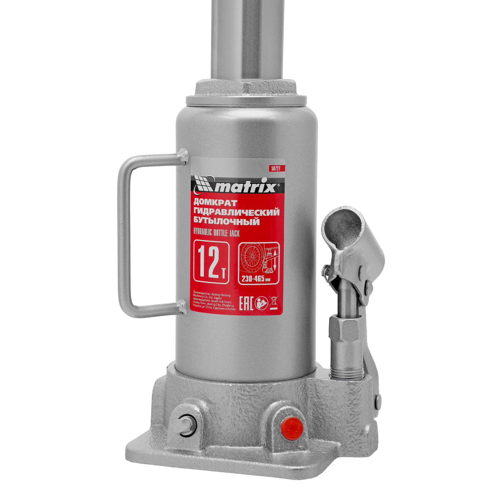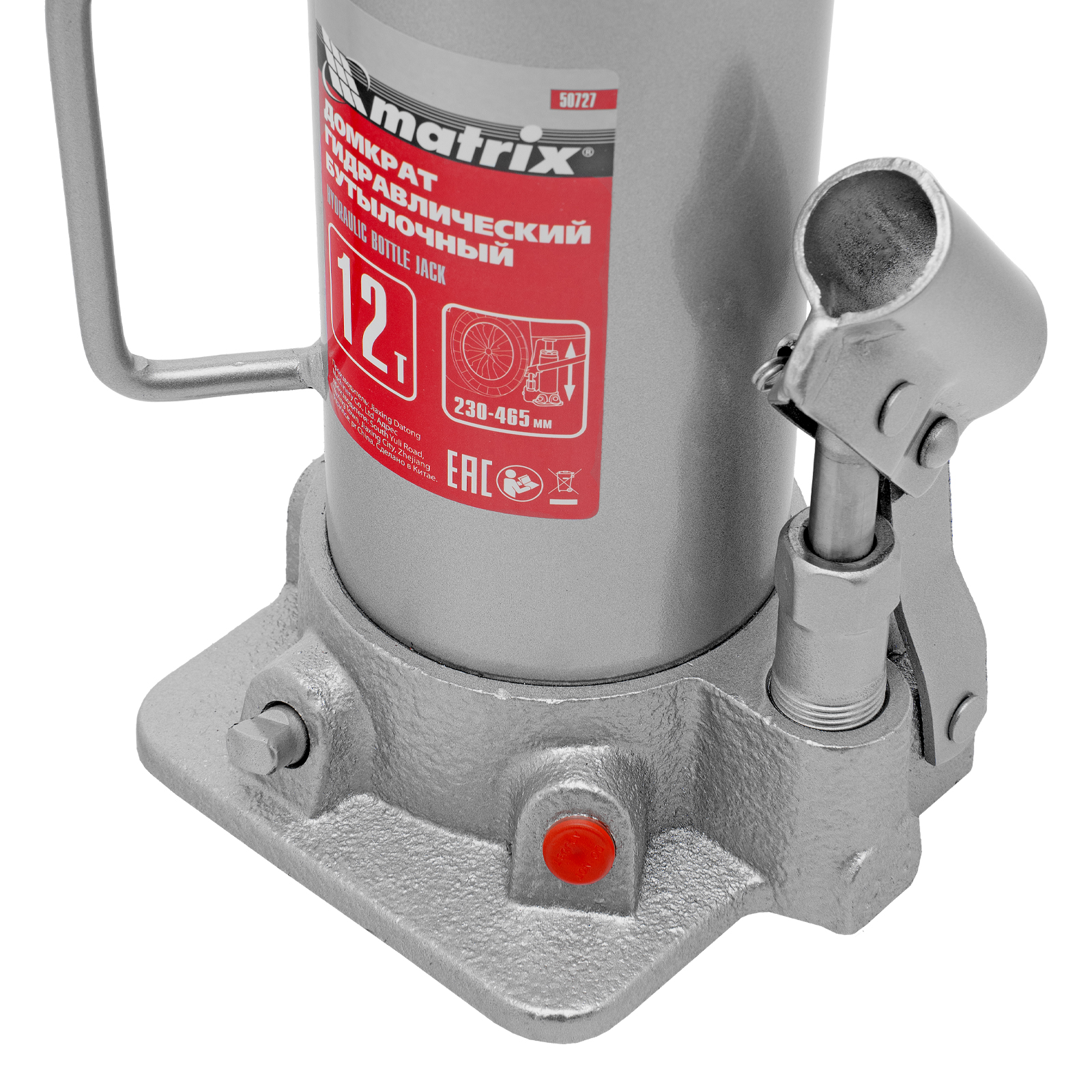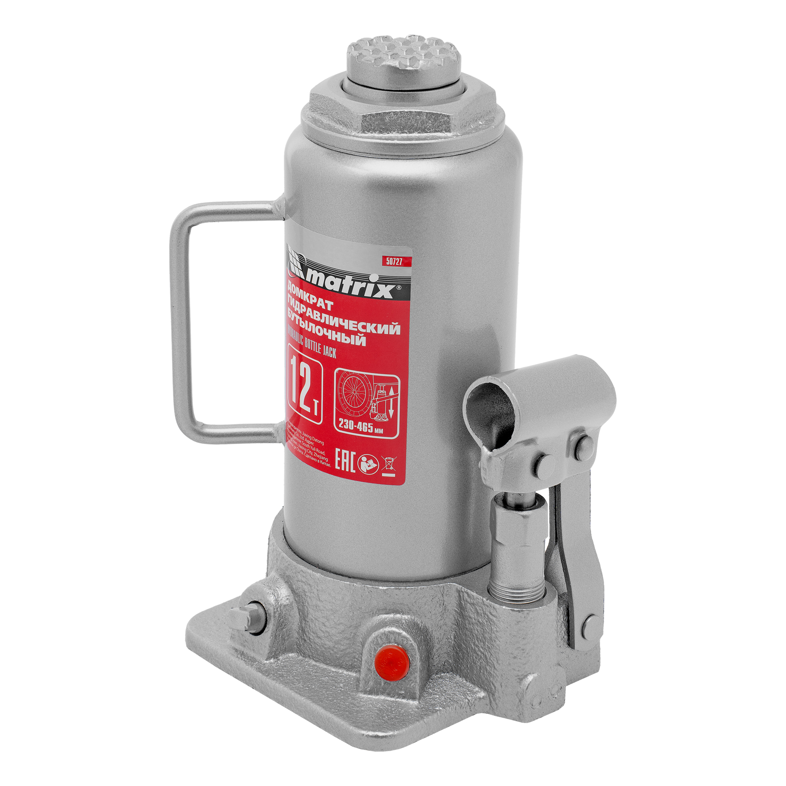 Домкрат гидравлический бутылочный, 12 т, высота подъема 230-465 мм Matrix
